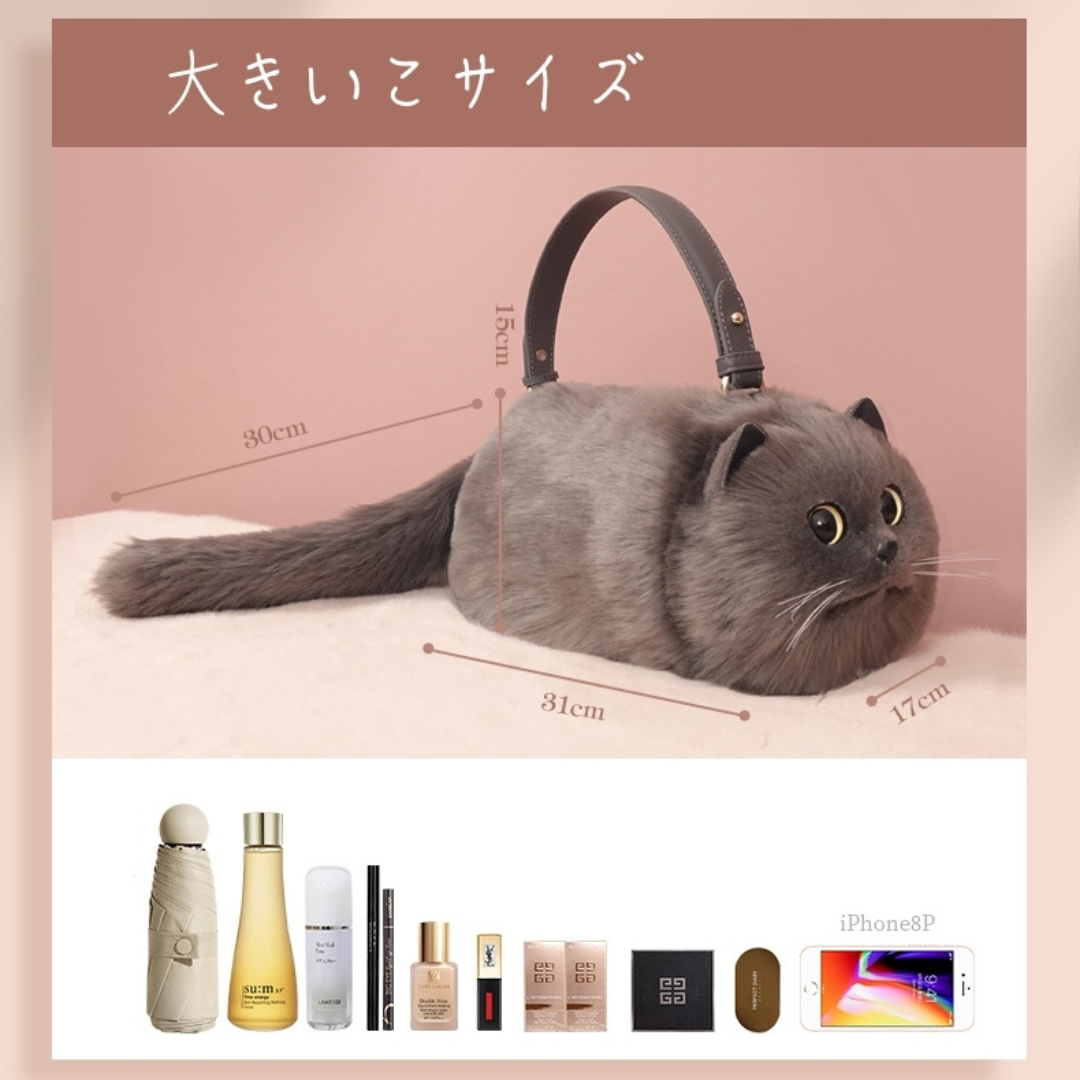 【大きいこ】モフモフグレーキャットバッグ♥LA282