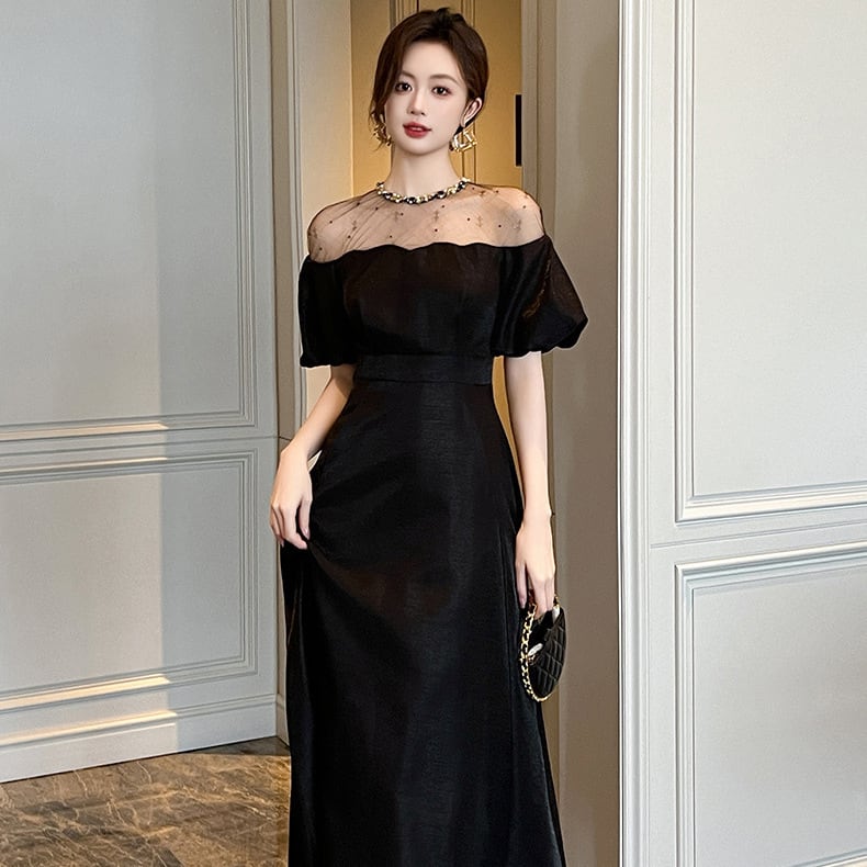 夜景に溶けるブラックエレガンス~ロングドレス■T16