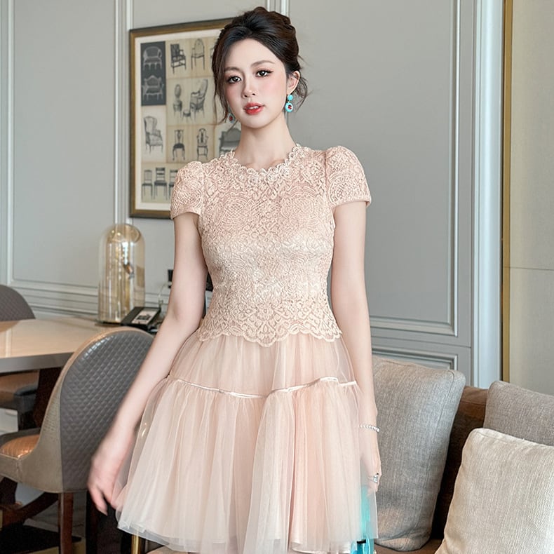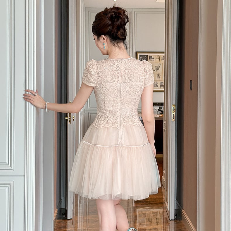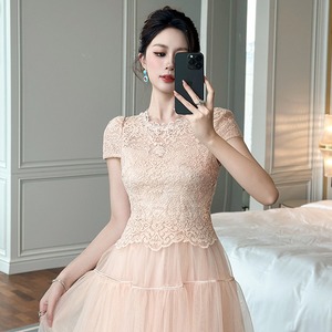 デコルテから袖にかけての透け感が上品で、洗練された雰囲気を引き立てます。