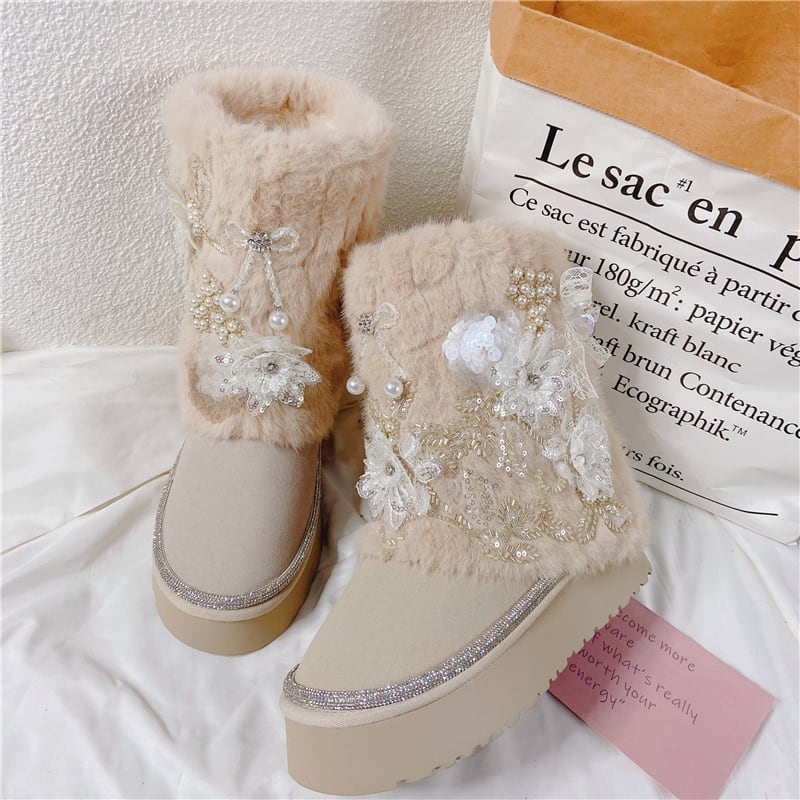 雪の夢を纏う ― パールビジューショートブーツ■A17