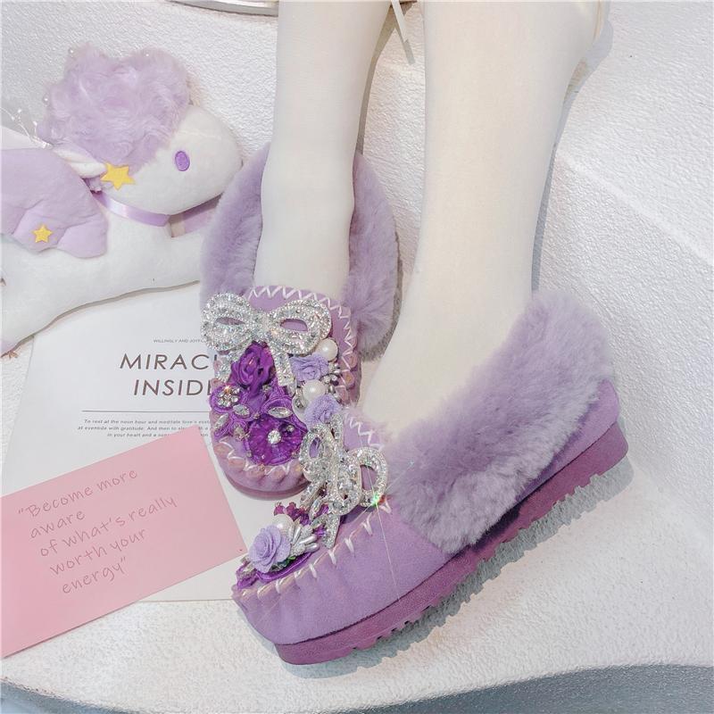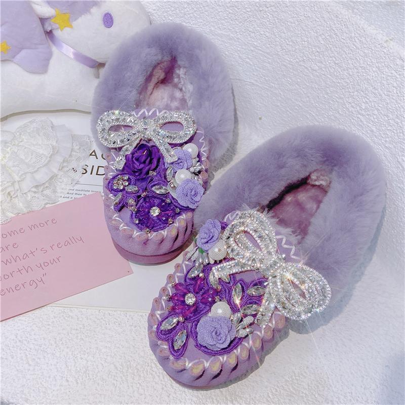 夢幻の花園に咲く ― パープルビジューファーブーツ■A18