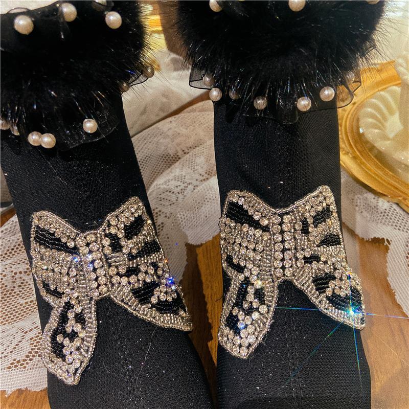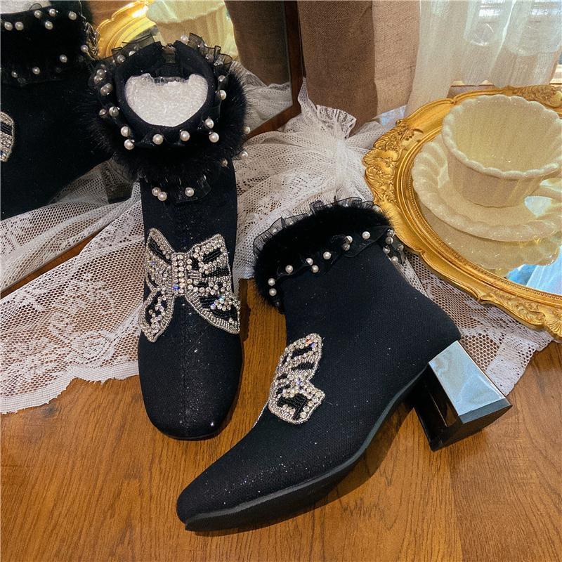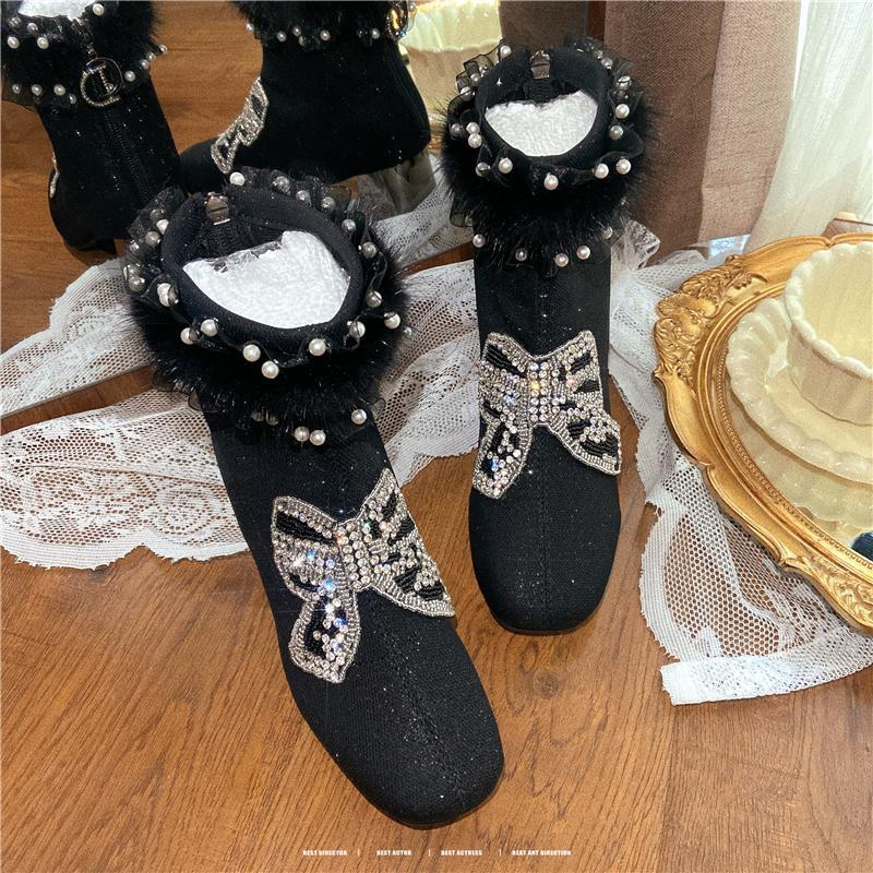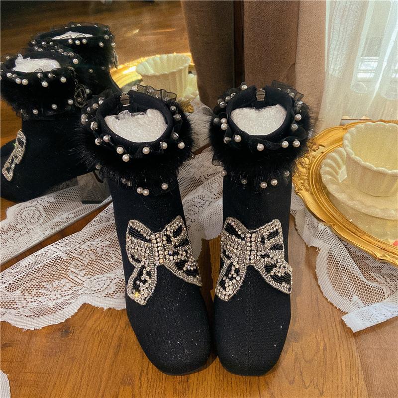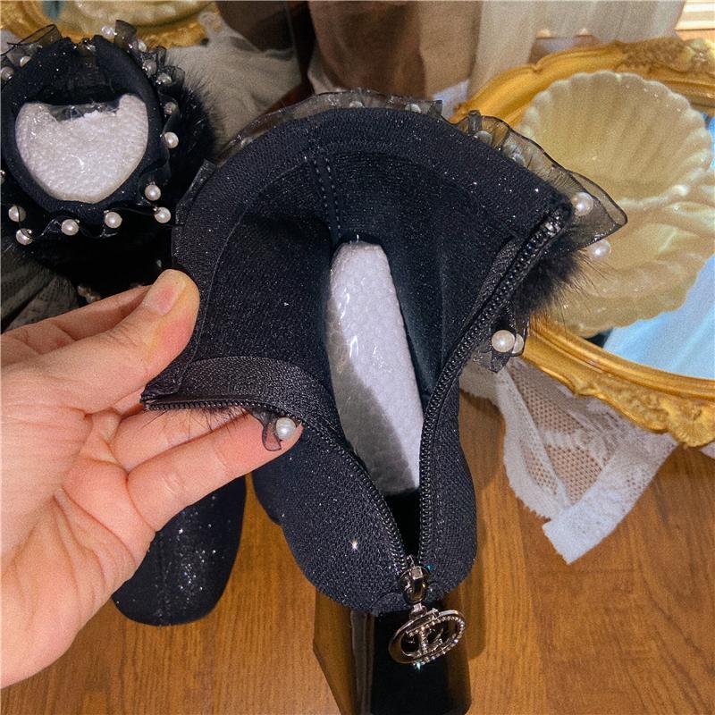 漆黒に舞う光 ― パールビジューブーツ■A29