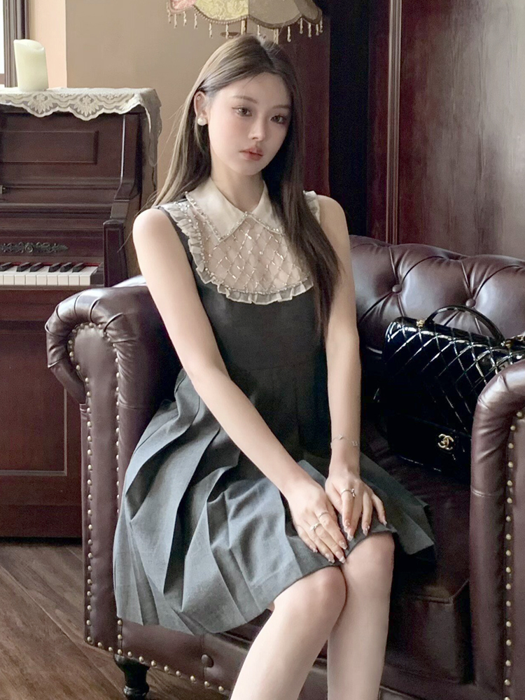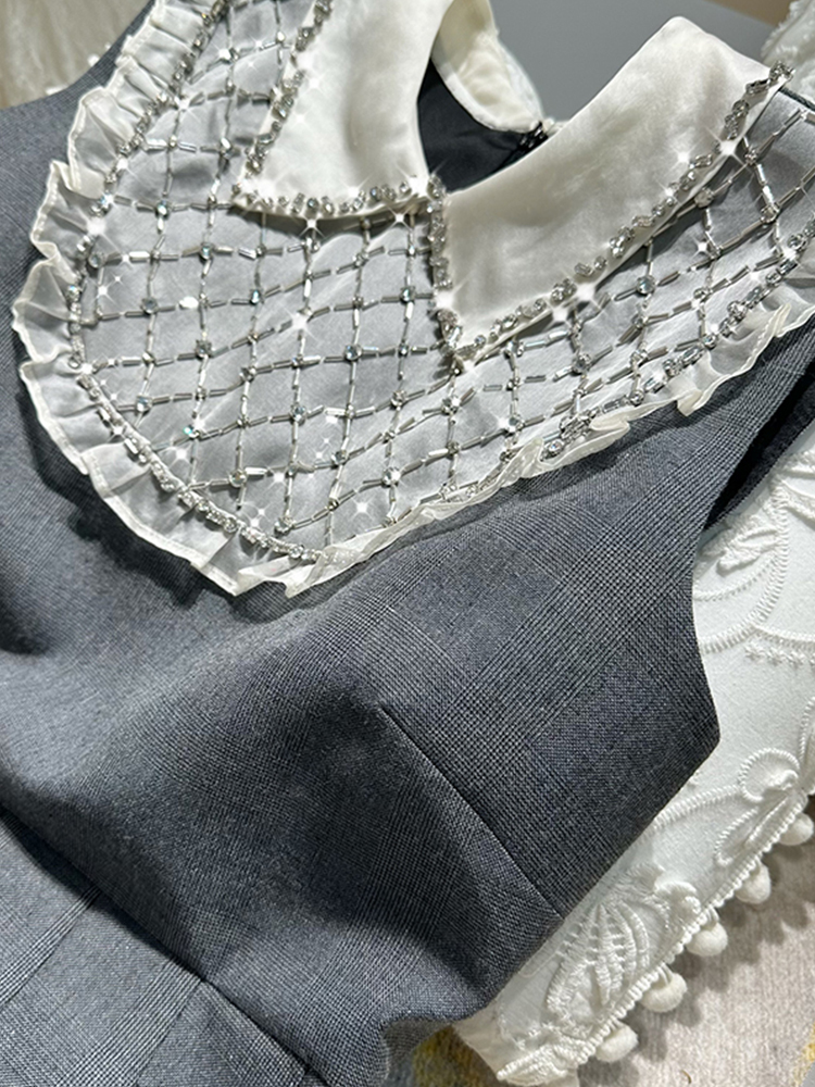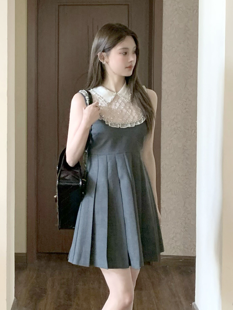 やわらかな花のように咲き誇るレースカラーが、 顔まわりを可憐に彩るワンピース。