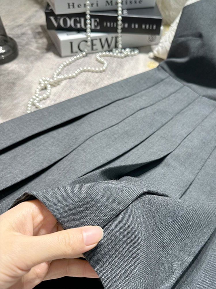 上品なプリーツスカートは、歩くたびに軽やかに揺れ、 シルエットをよりフェミニンに演出します。
