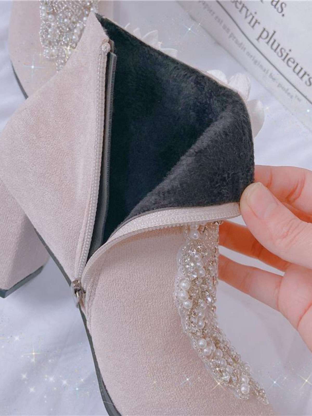 滑らかなラインとビジューの輝きが、あなたの歩みを美しく照らす。