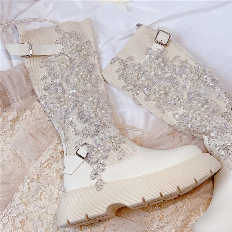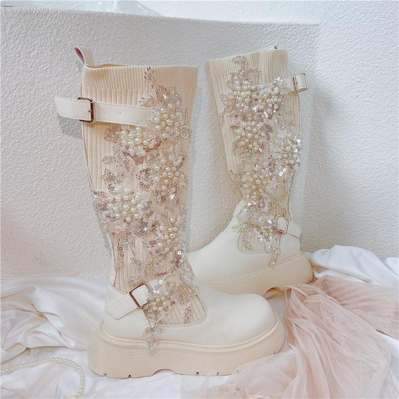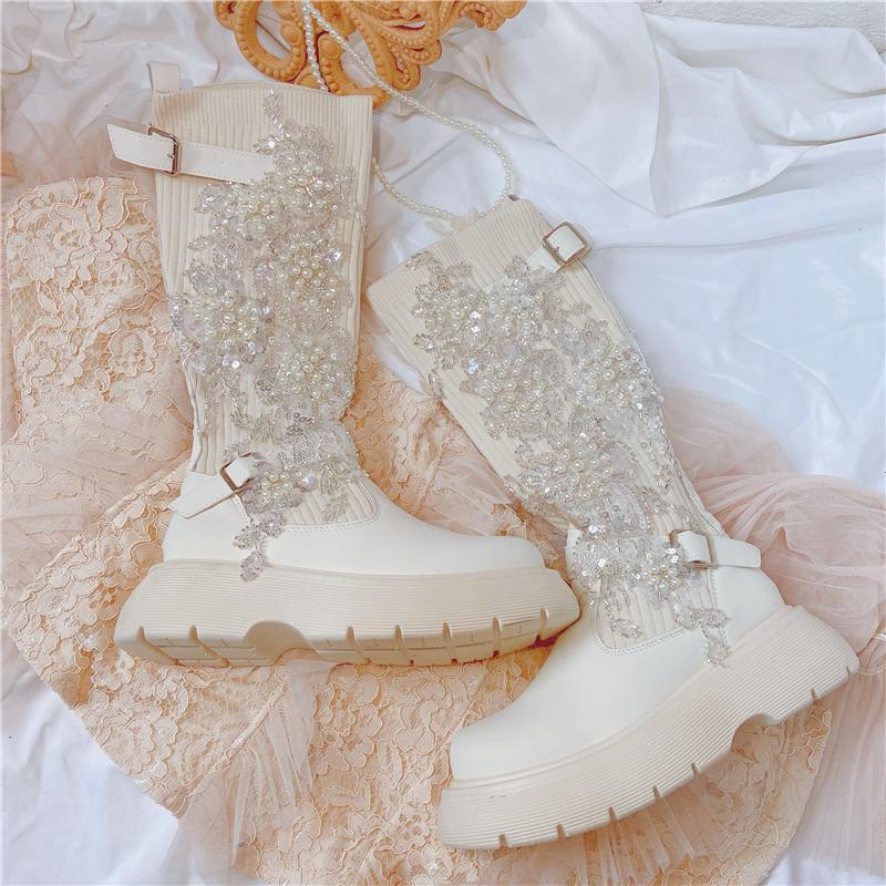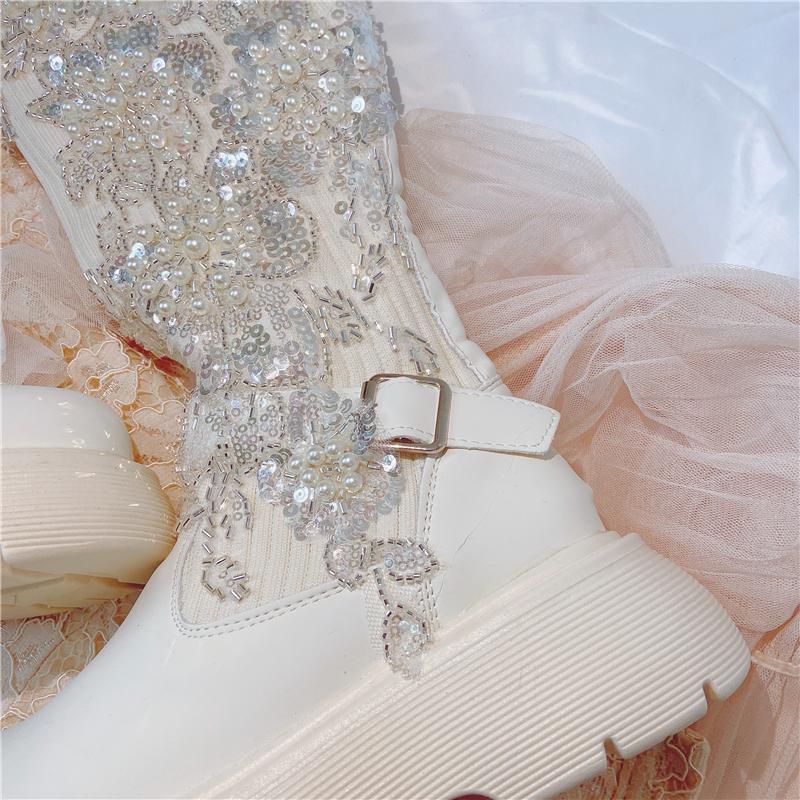その儚くも凛とした美しさを、足元に宿したブーツ。