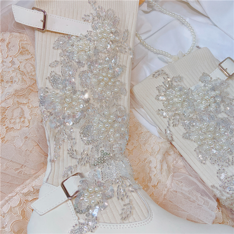 職人の手で一粒ずつ丁寧に縫い付けられたビーズとパールが、