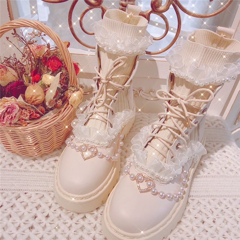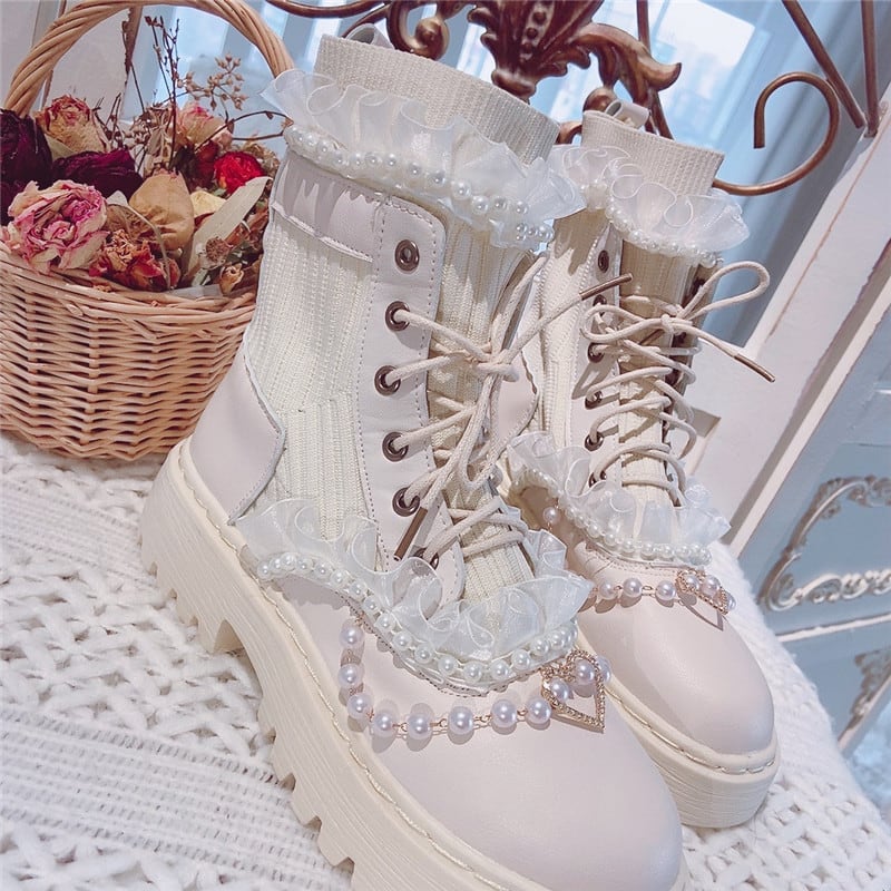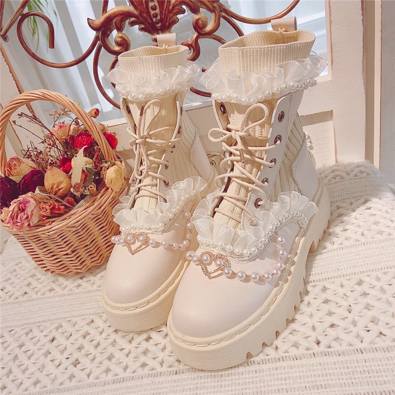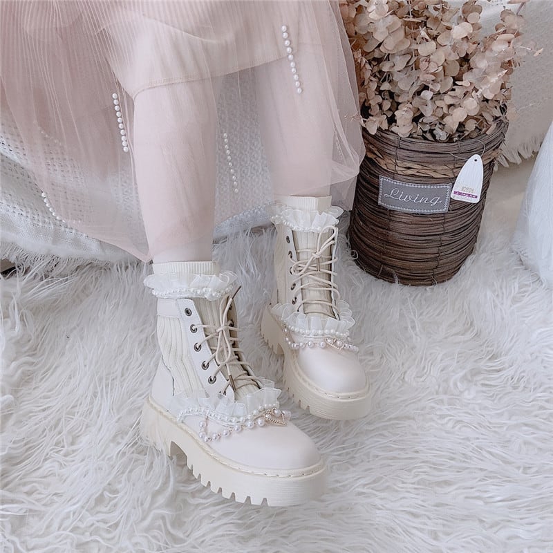 少女のレースマーチ – Pearl Lace Martin Boots ♥A63