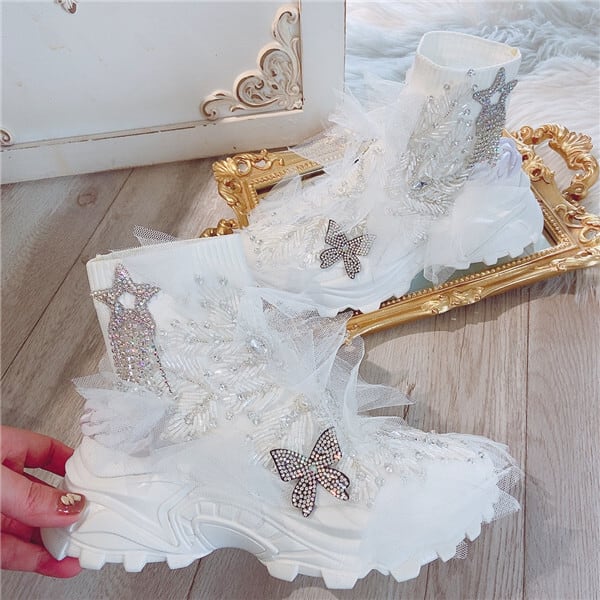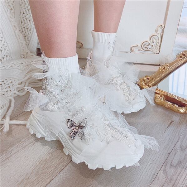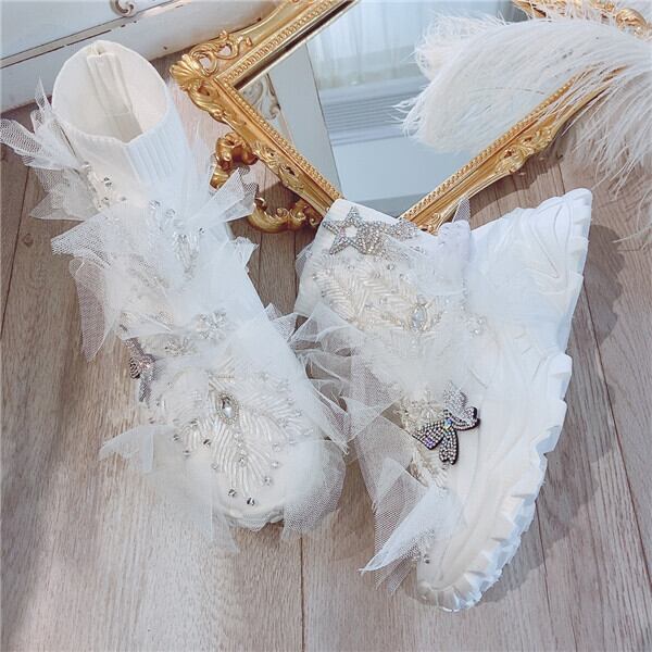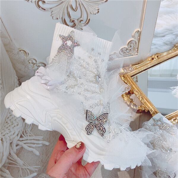 白き流星のスリップオン – Starlit Knit Sneakers ♥A62