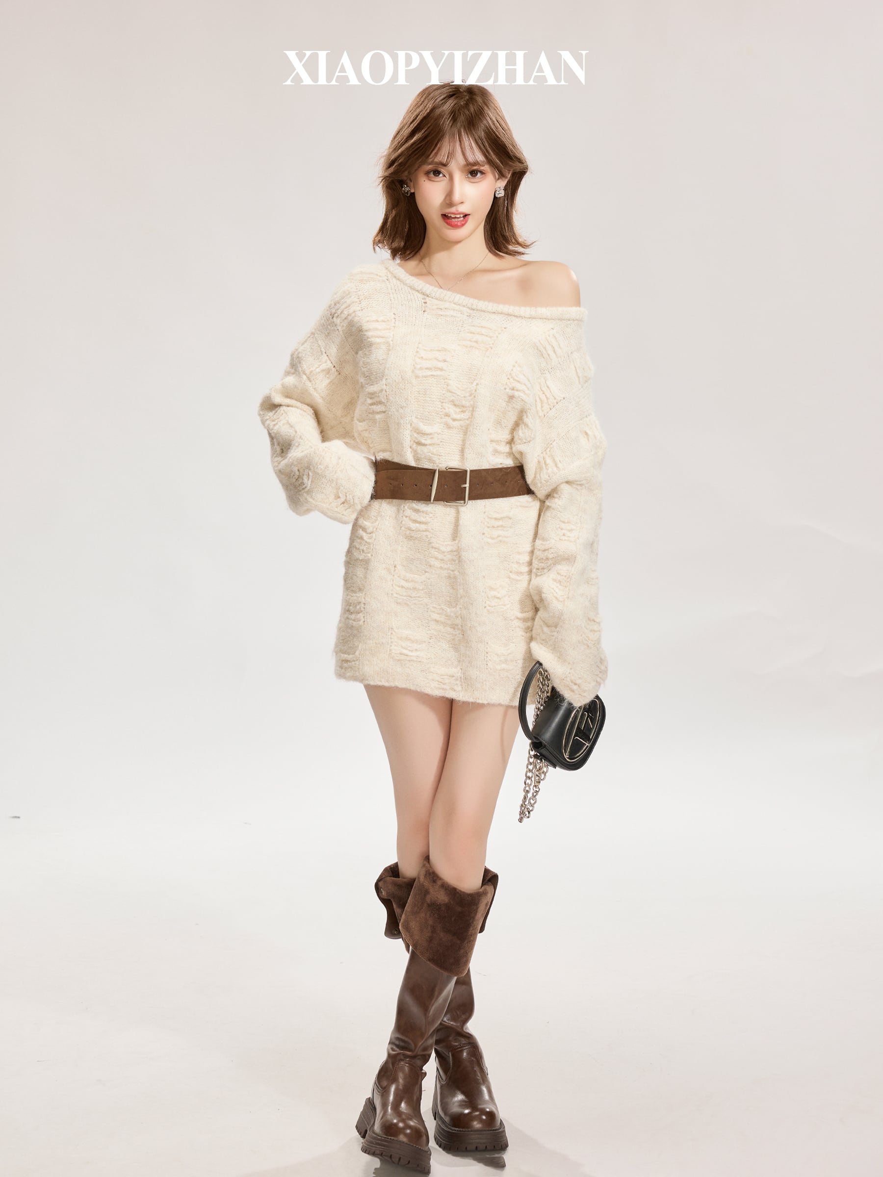 夜の静けさを纏うような、黒のワンショルダーニット。