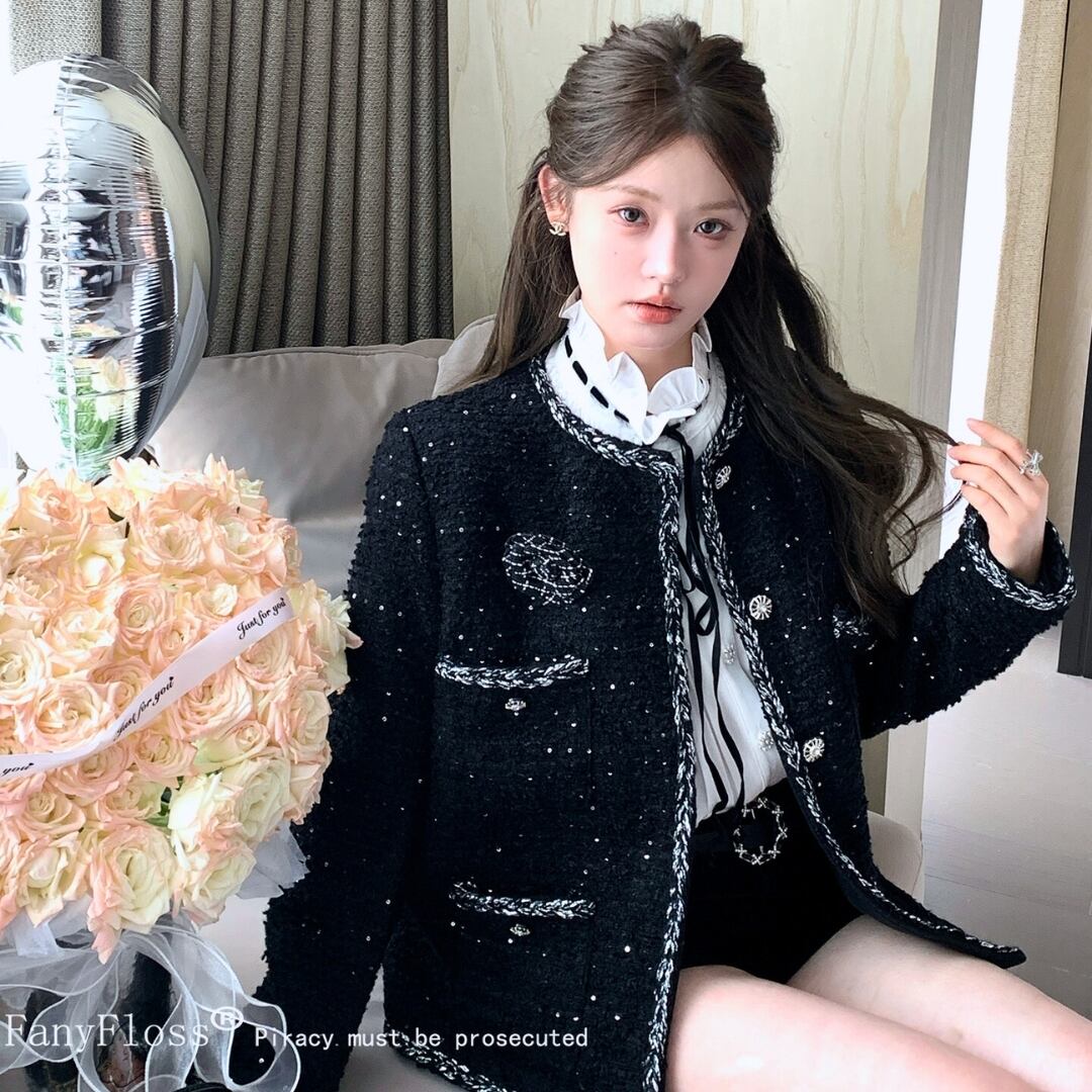 夜を飾る黒の花ツイードジャケット – Noir Blossom Tweed ♥A190