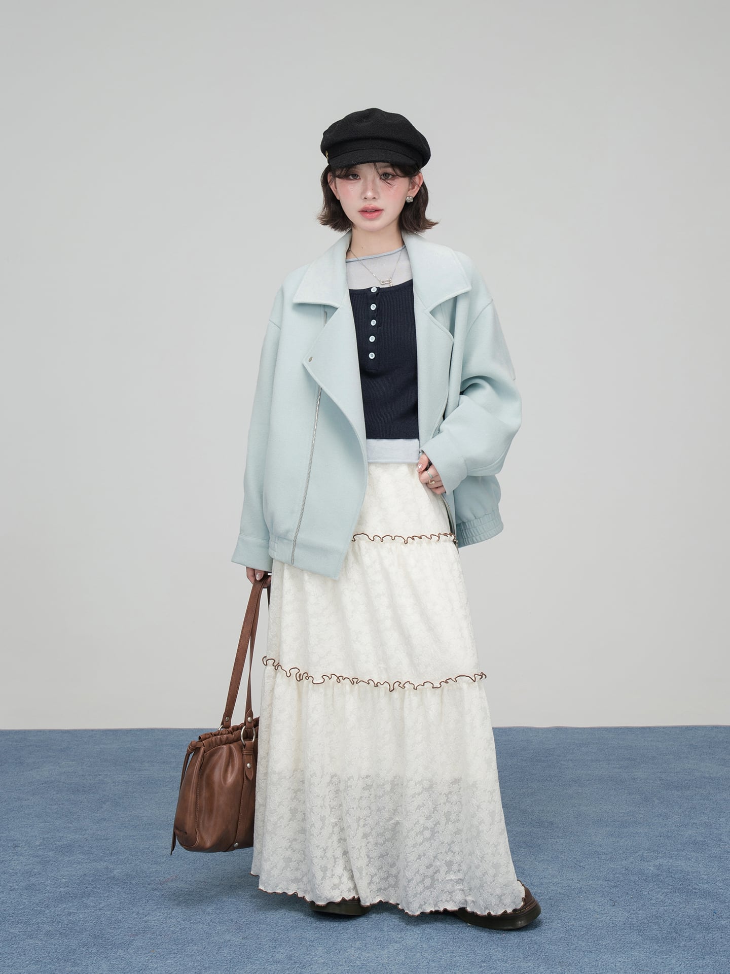 シーソルトブルー – ウールブレンドライダースジャケット ♥A002