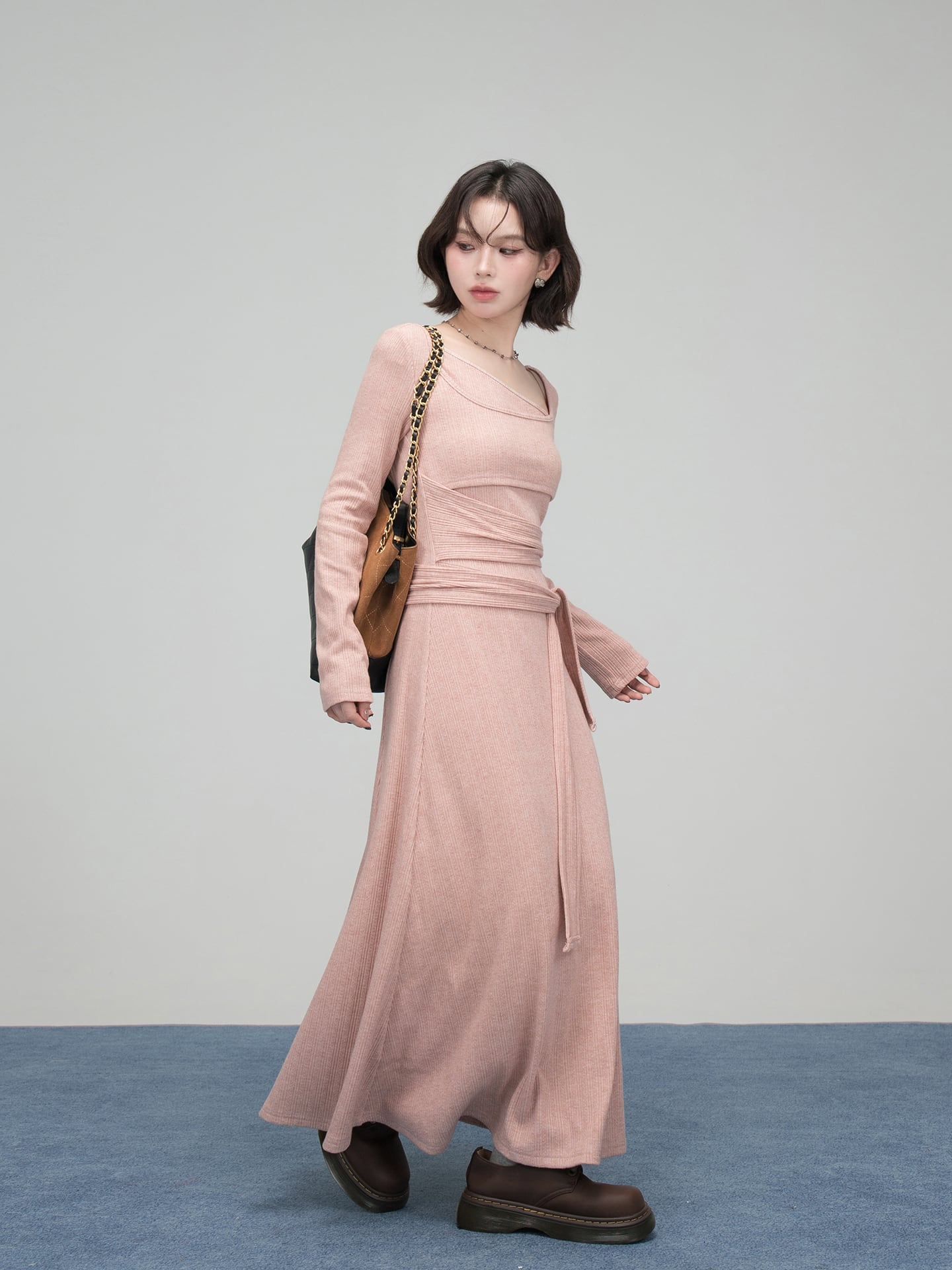 ロゼドリーム – ウエストリボンニットワンピース ♥A008