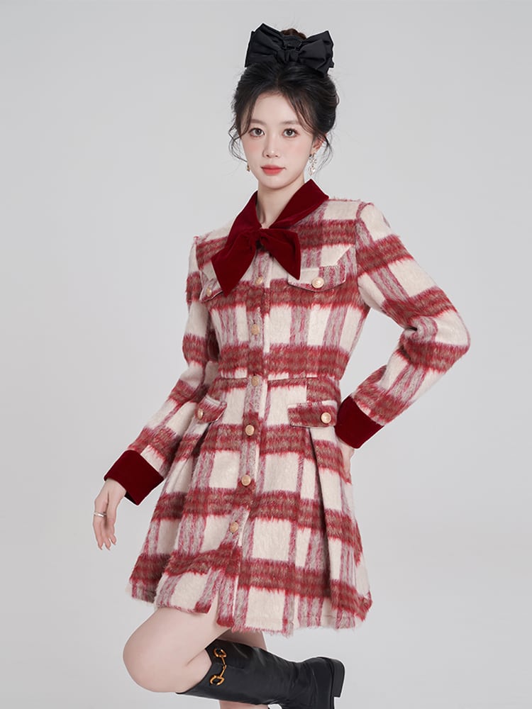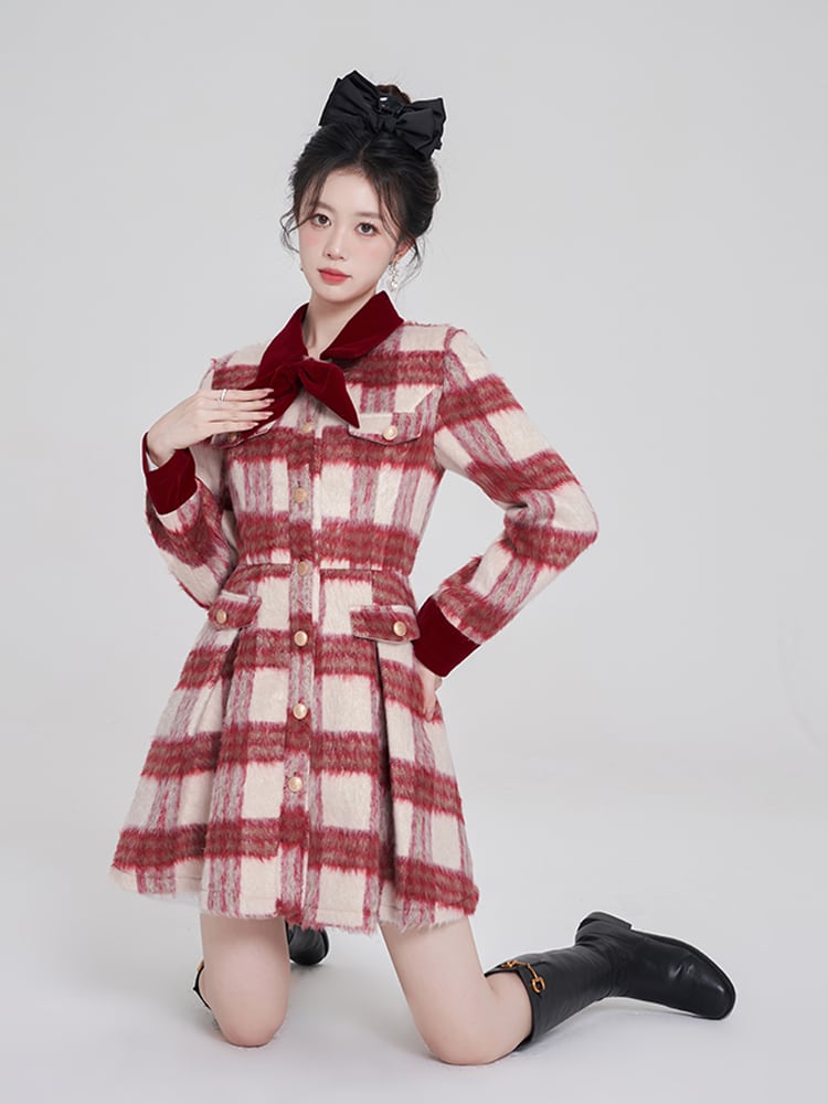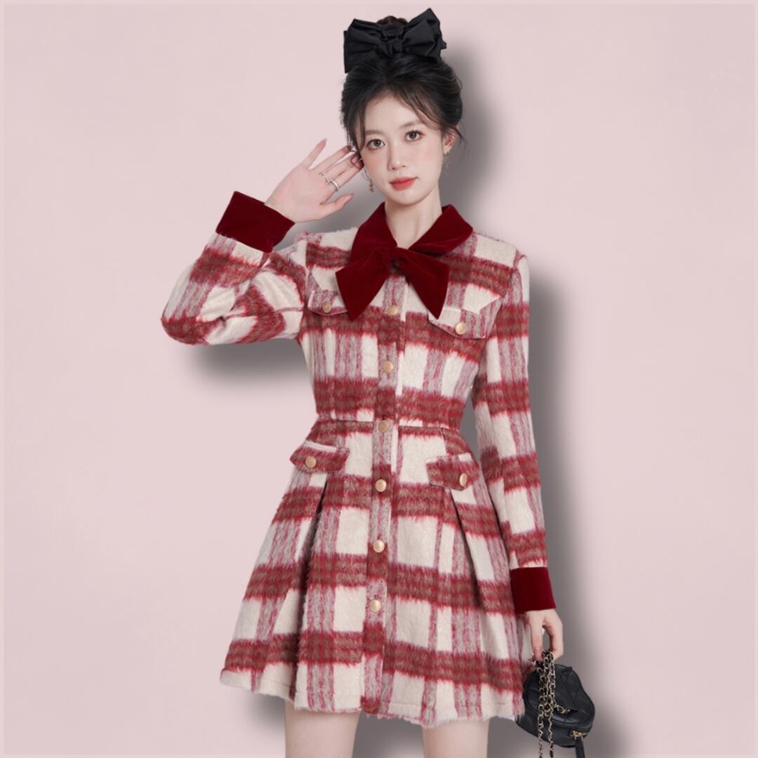 フレンチルージュチェック – ロングスリーブワンピース ♥AL052