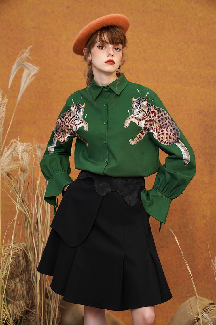 ミスティフォレスト・シャツ — 静寂に咲くグリーンの詩 ♥A067