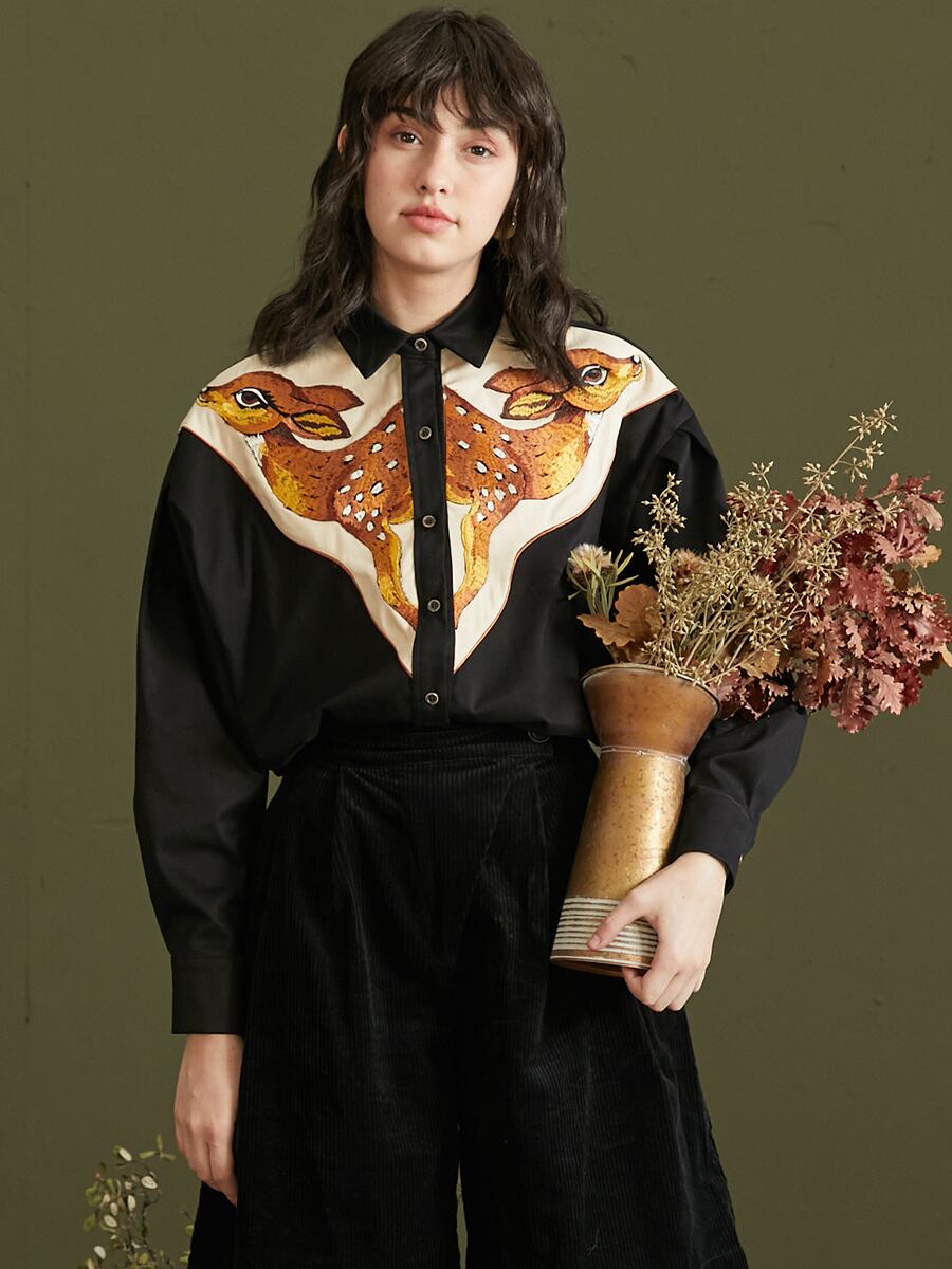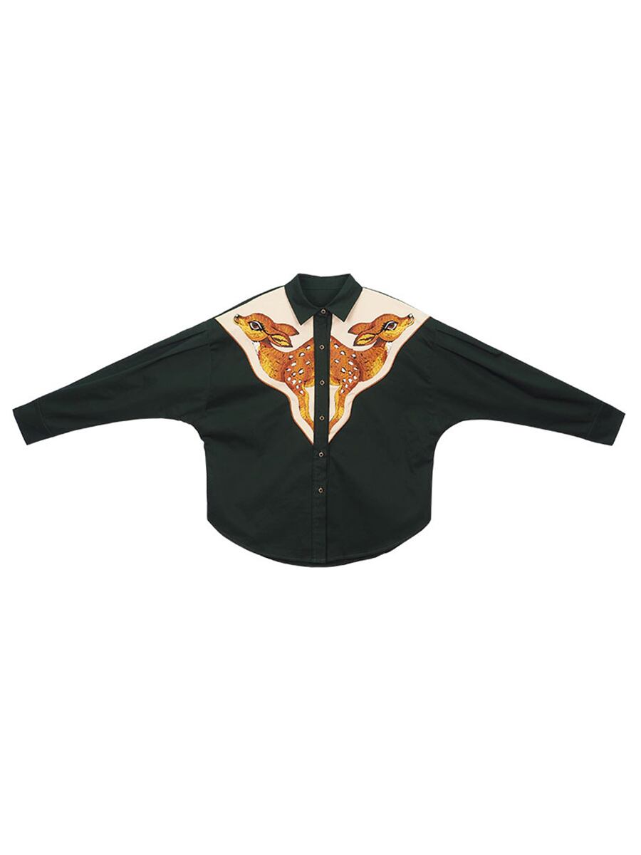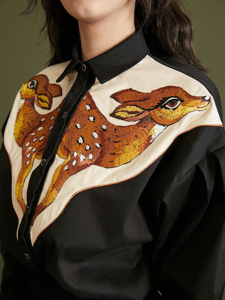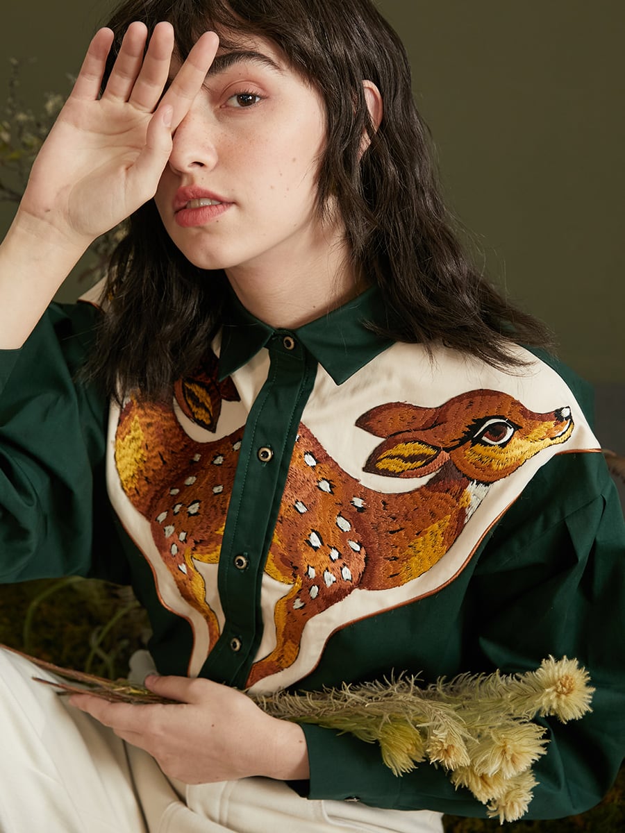 クラシックディア・シャツ — 森の守り手の刺繍 ♥A075