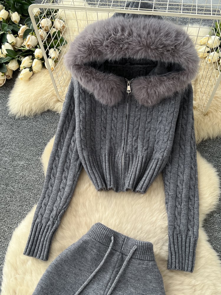 モカシュガー・ムード — フォックスファーショートニットセット ♥A097