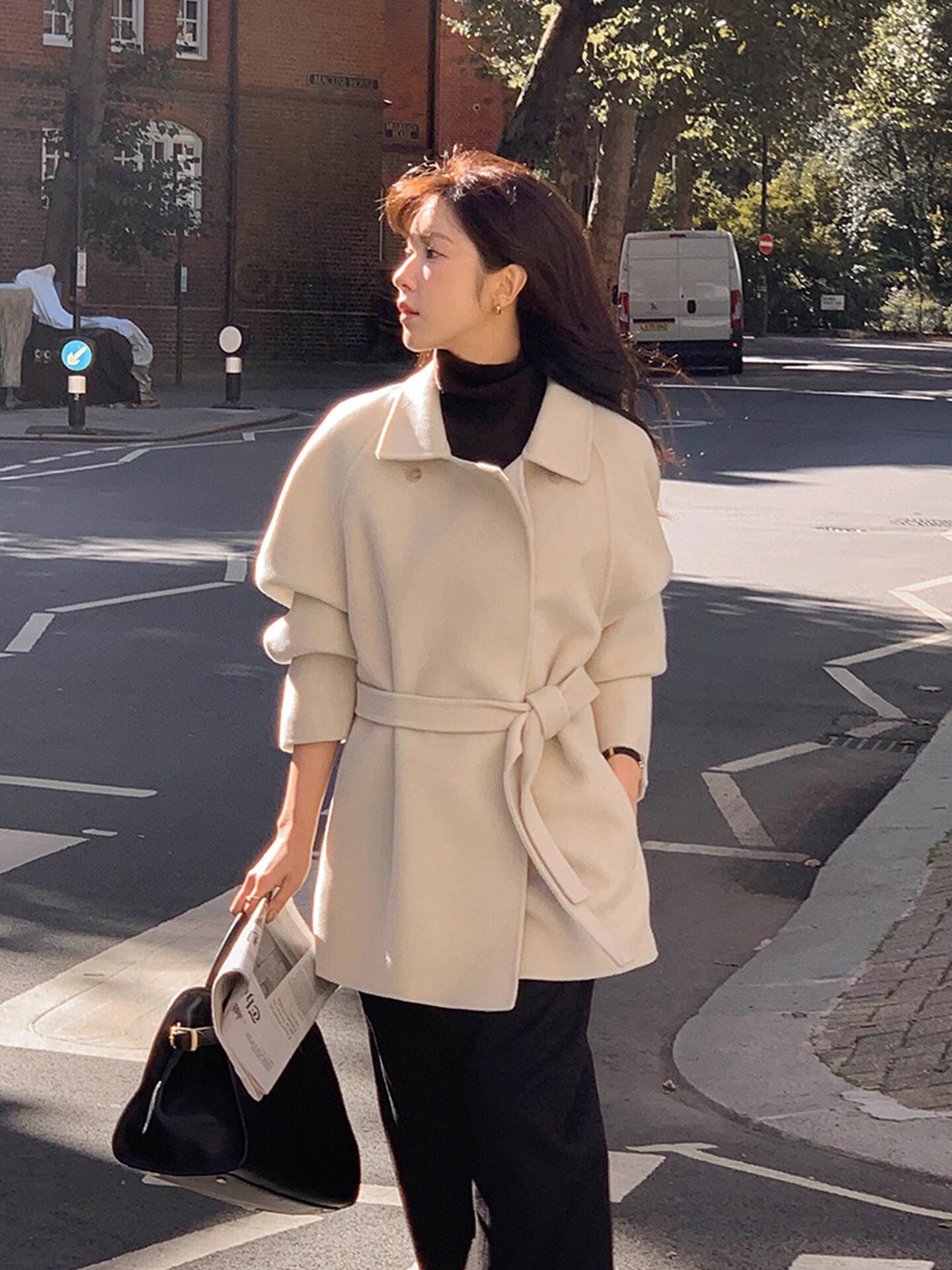 ロマンティックシルエット — ベルトダブルウールコート ♥A135
