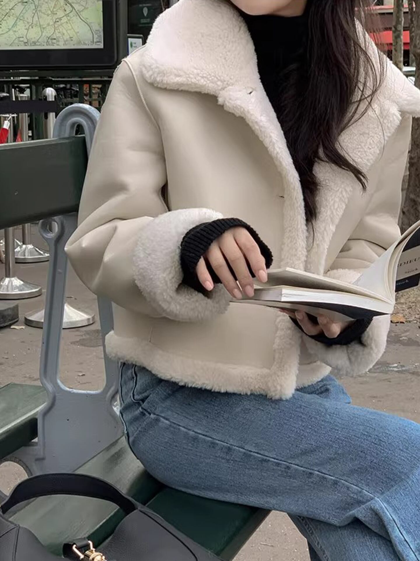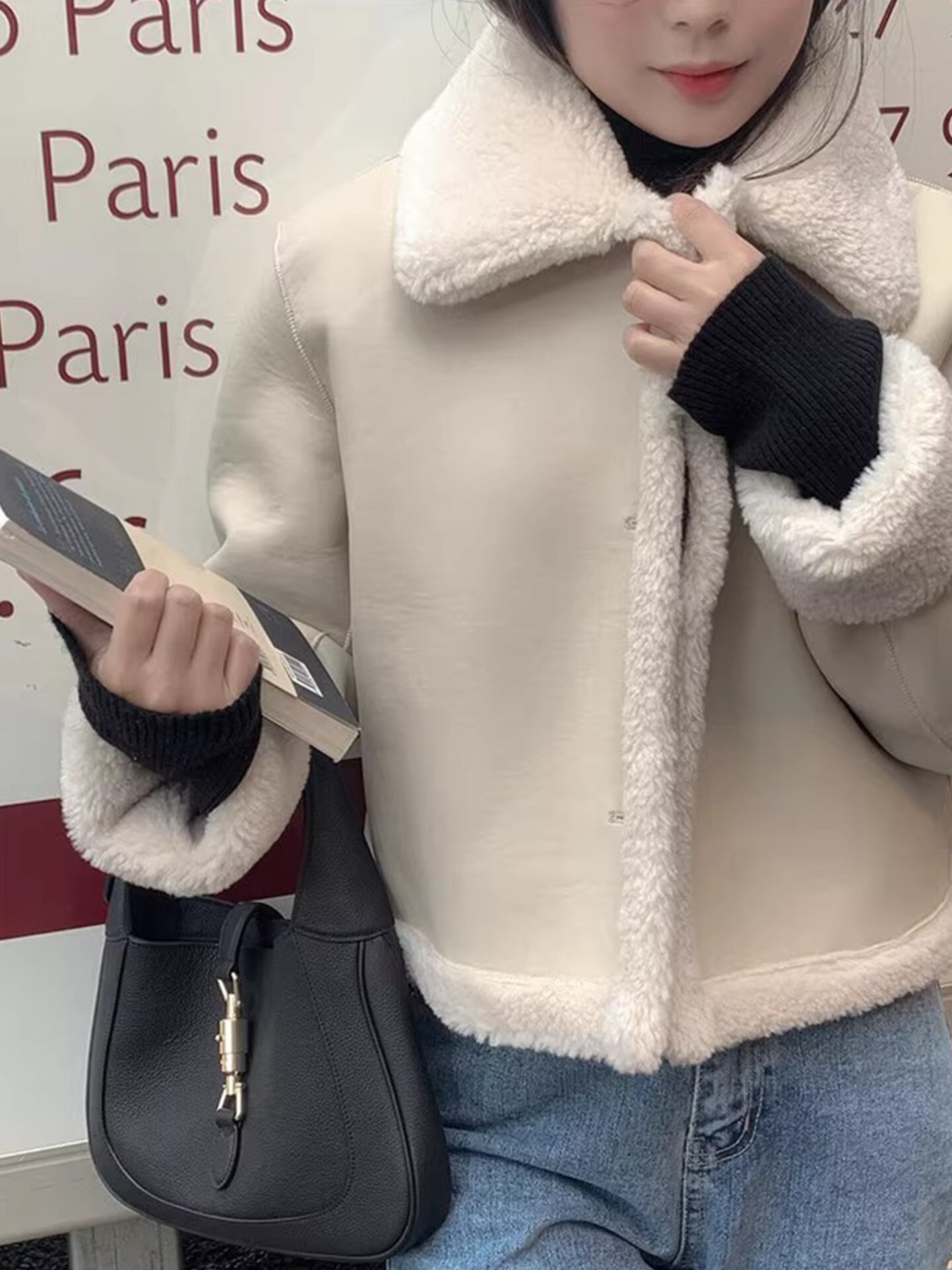 裏面はふわふわの羊羔毛で仕立てられた贅沢な一枚。