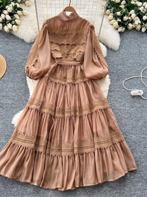 繊細なレースと優美な透かし模様が描く、クラシカルで気品あふれる一着。