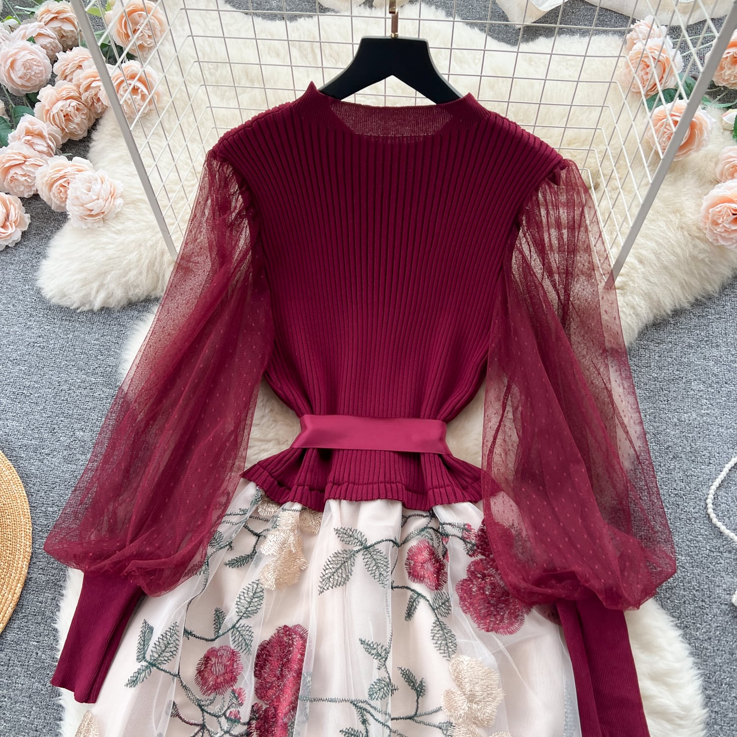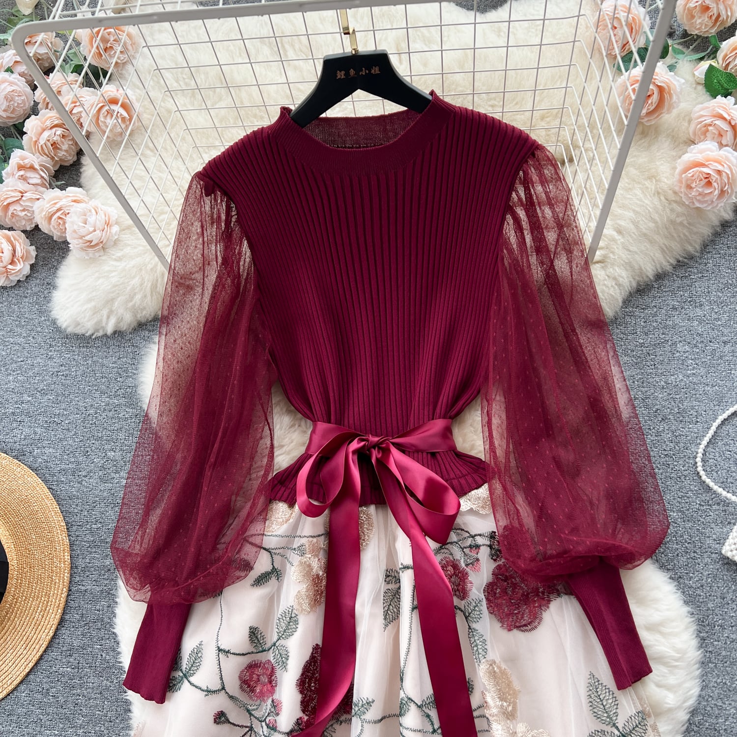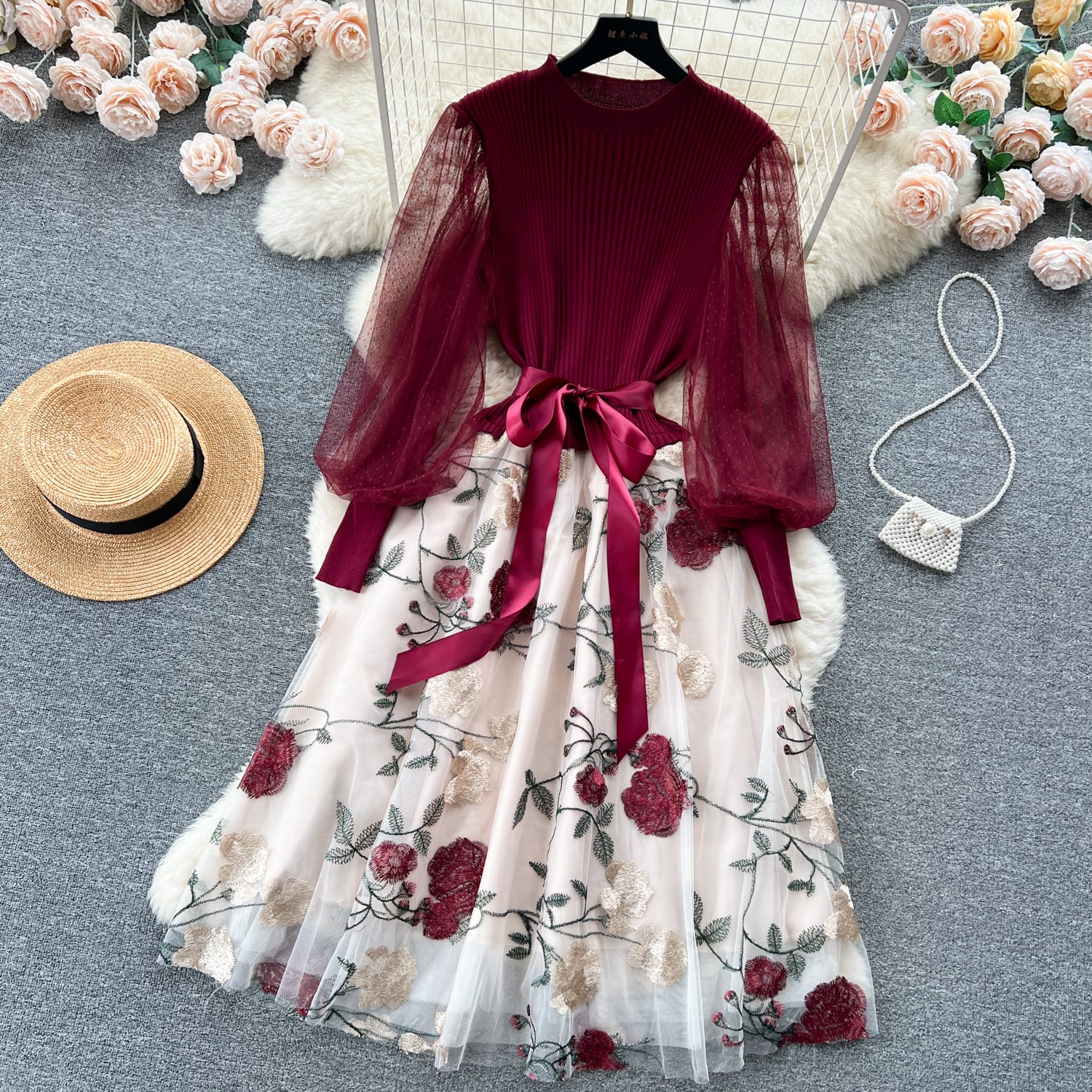 繊細なチュールと刺繍が織りなす、ロマンティックなニットドレス。