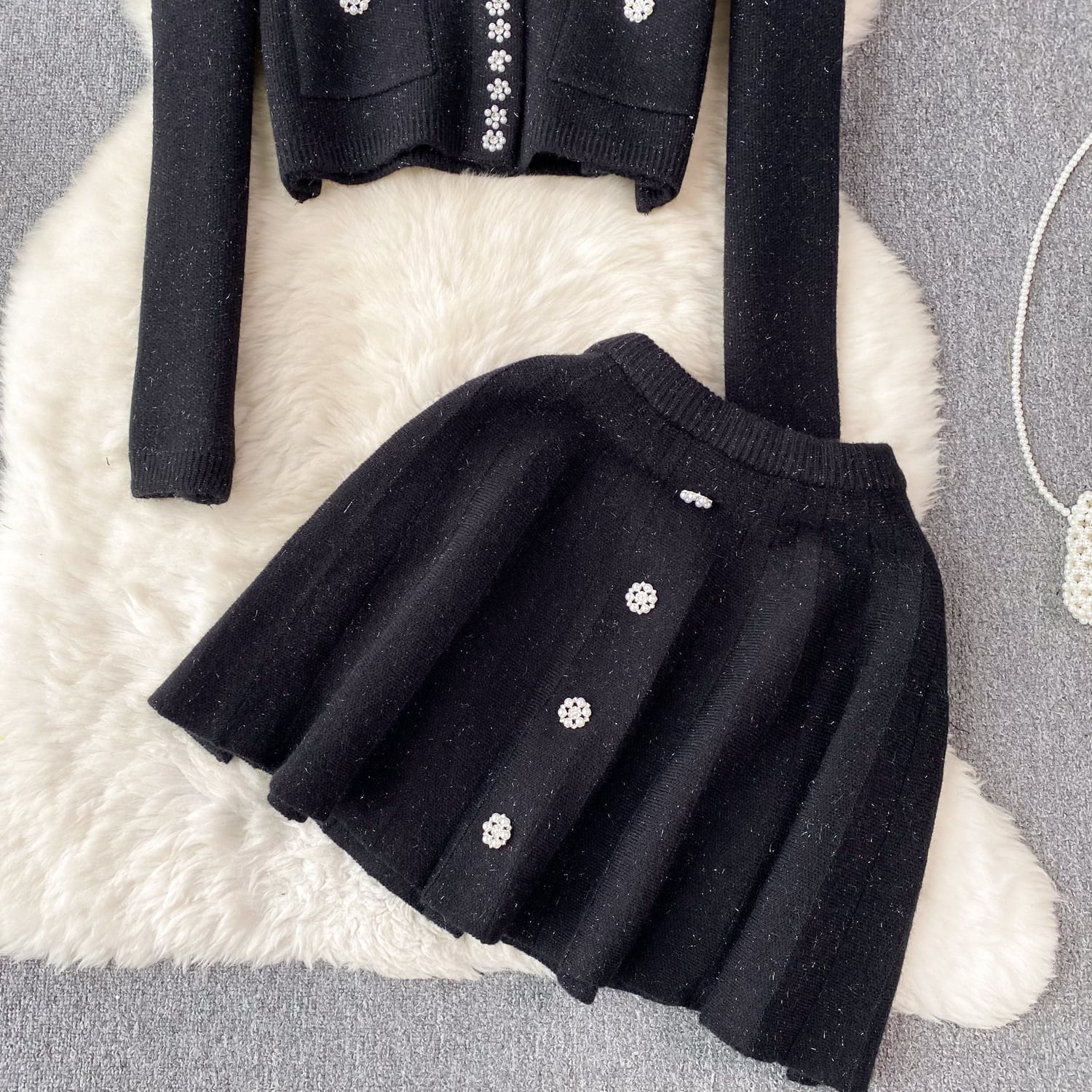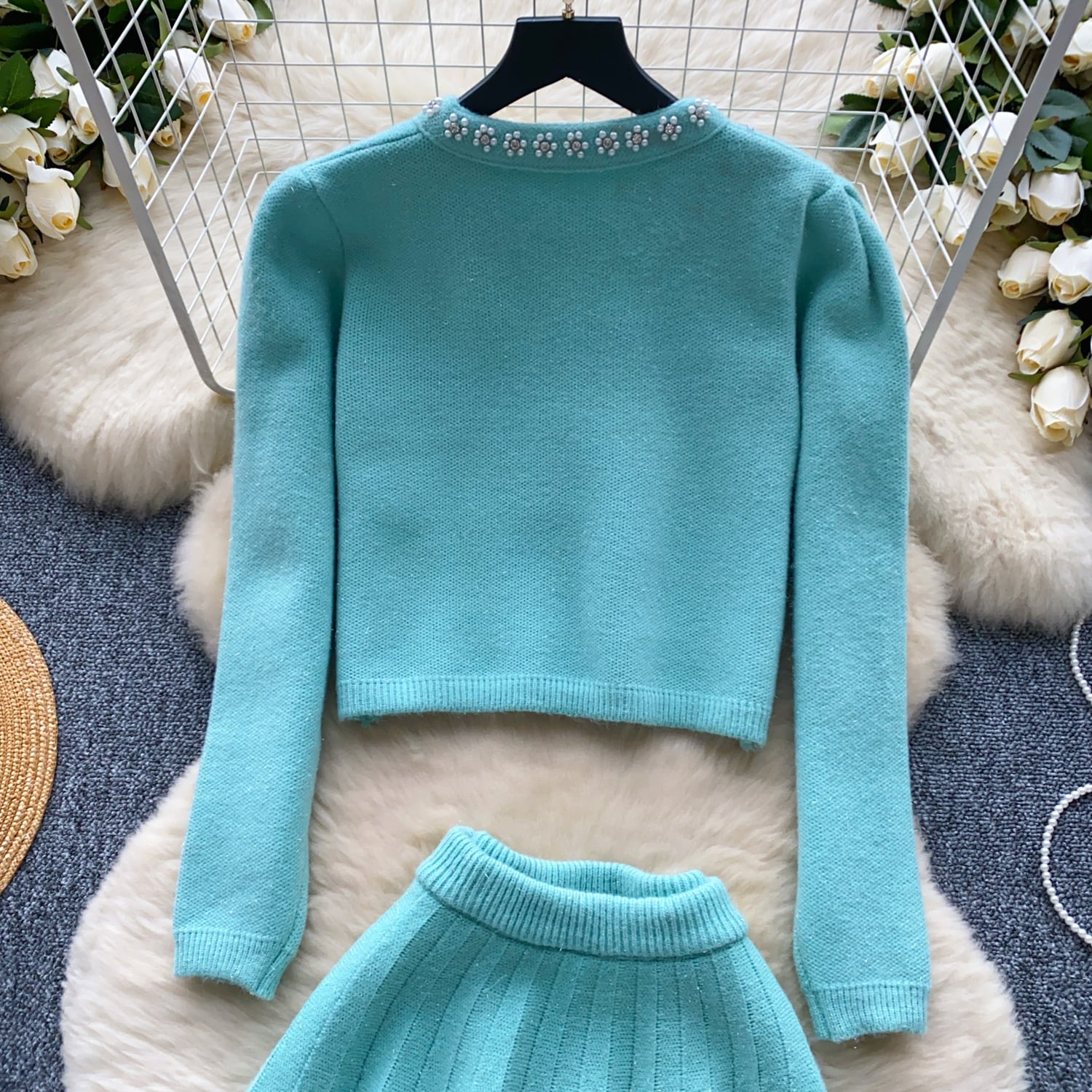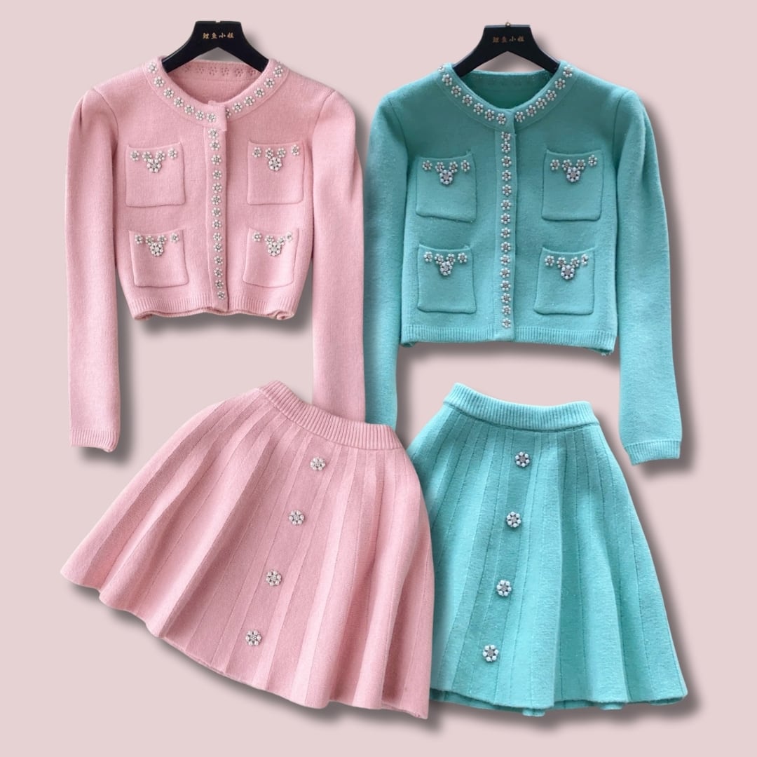 大人の可愛さと気品を両立させた、ニットセットアップ。