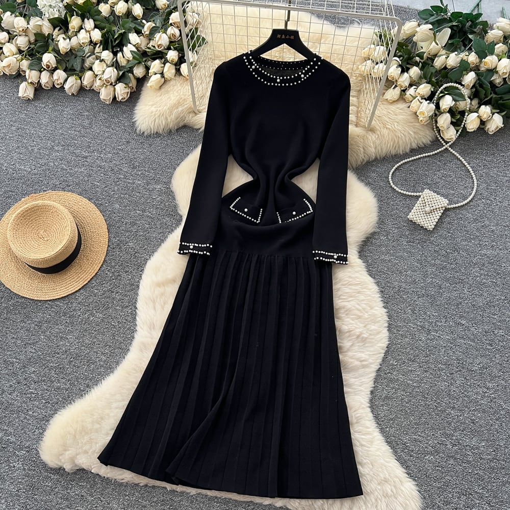 軽やかな揺らめきと繊細な質感が美しい、エレガントなロングニットドレス。