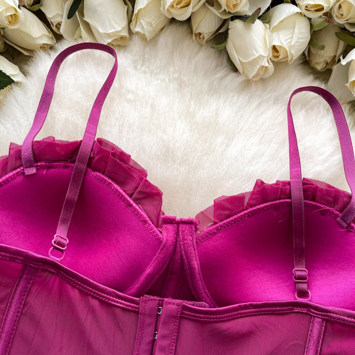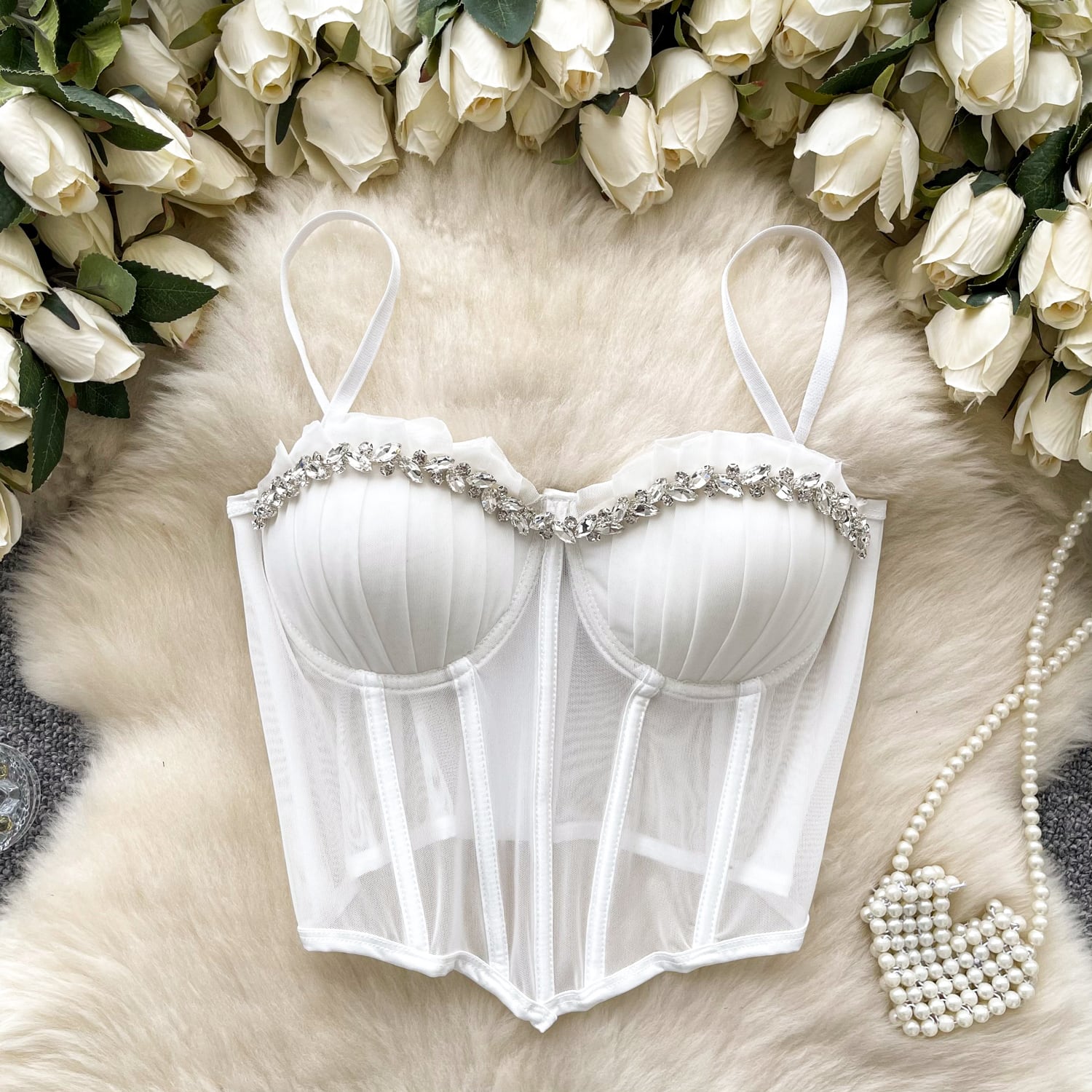 繊細な木耳フリルとストーン装飾がきらめきを添え、