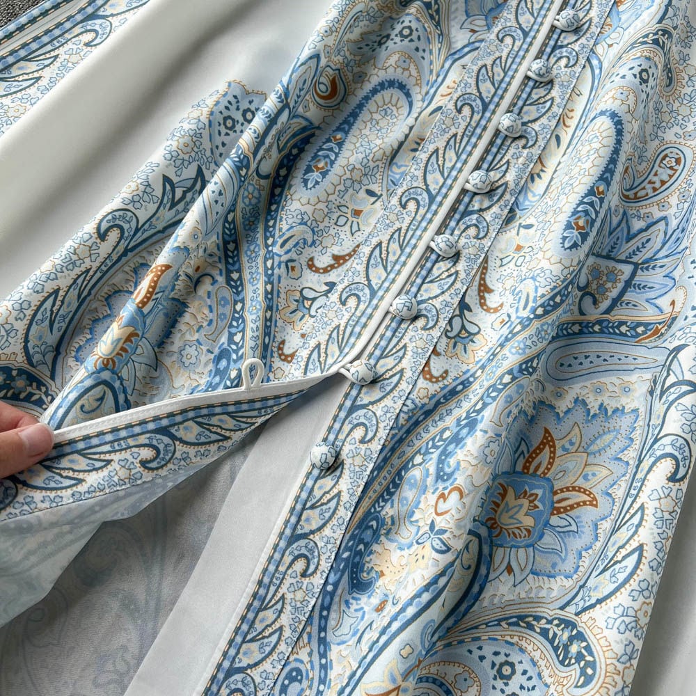 クラシカルな袖のラインと、ウエストを自然に引き締めるデザインで、