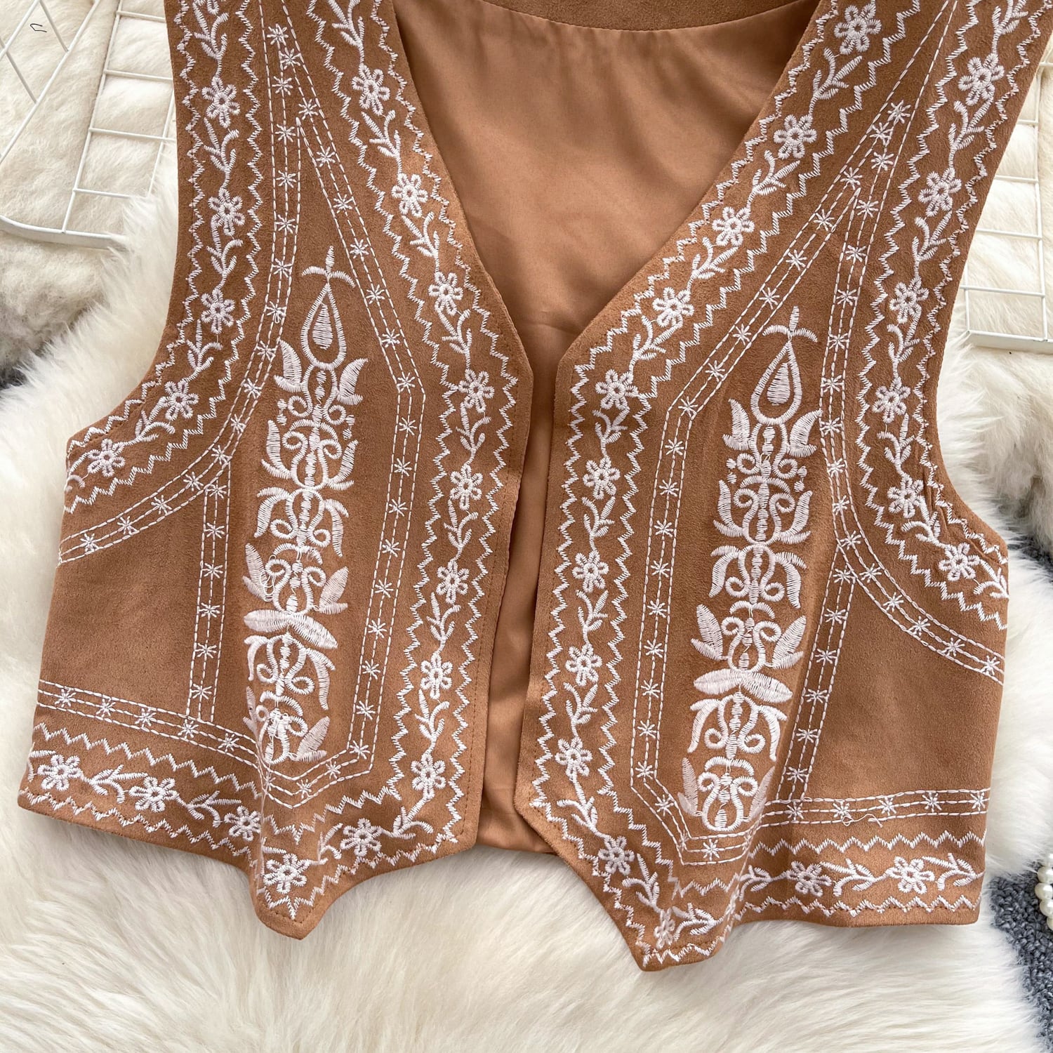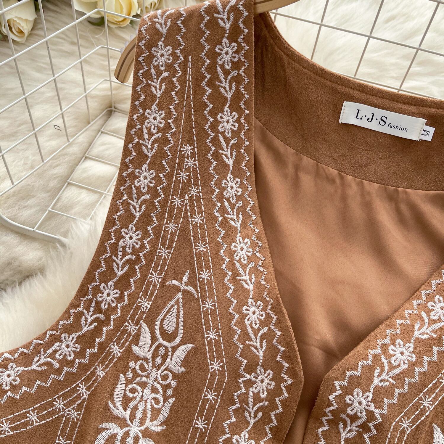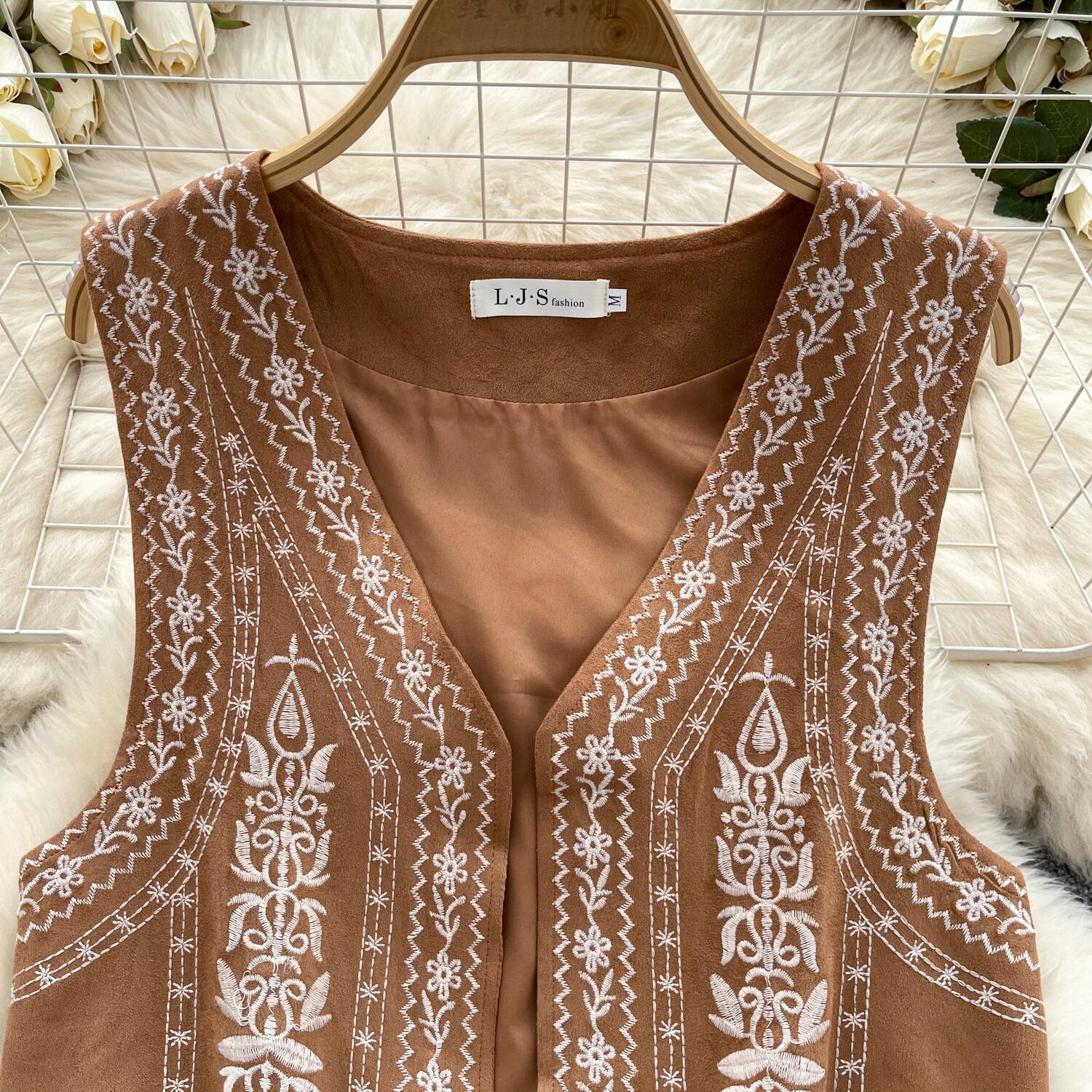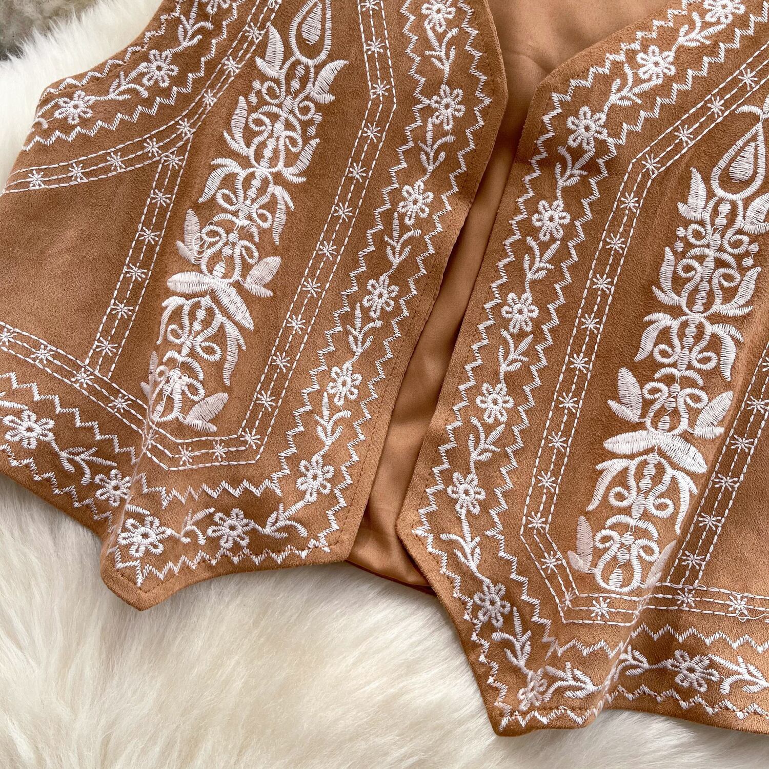ヴィンテージライクな風合いと、繊細な刺繍ディテールが魅力のデザインベスト。