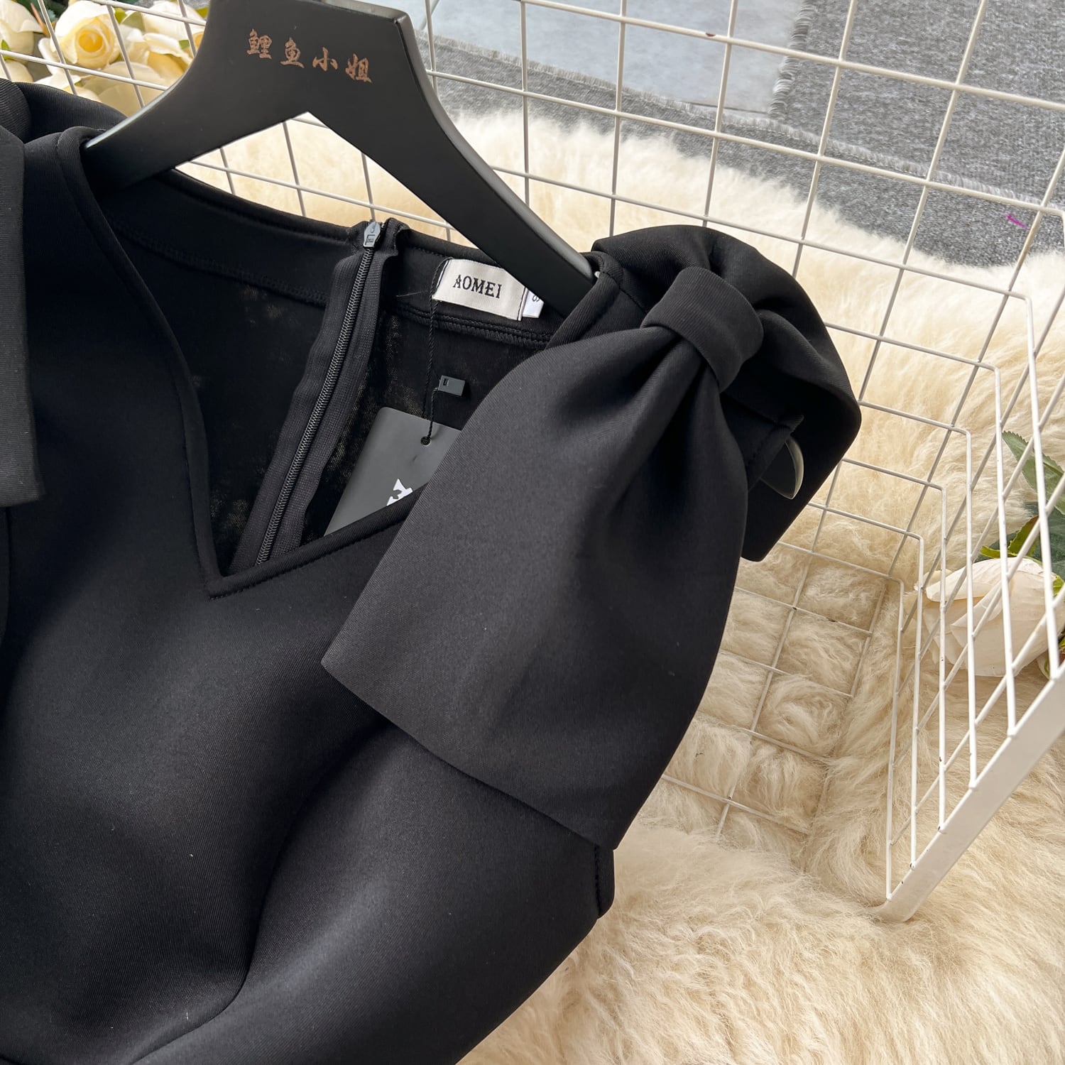 胸元のリボンが愛らしくも上品なアクセントとなり、