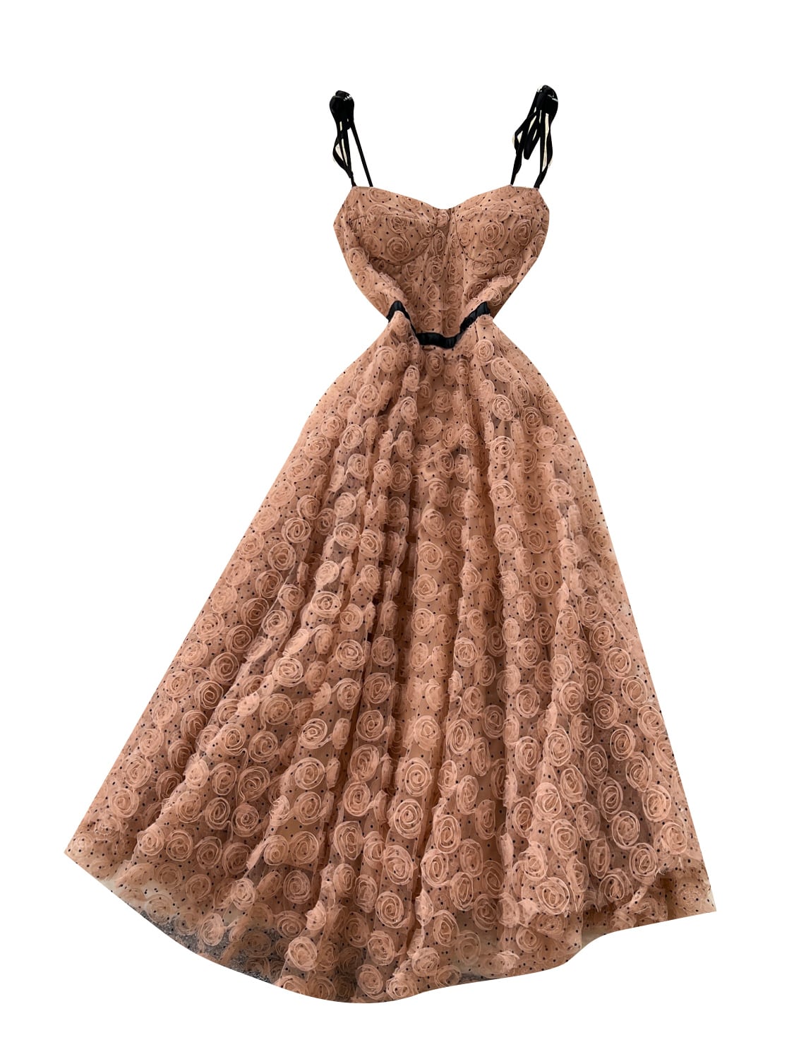 立体的なフラワーモチーフが咲き誇る、ラグジュアリーなサマードレス。