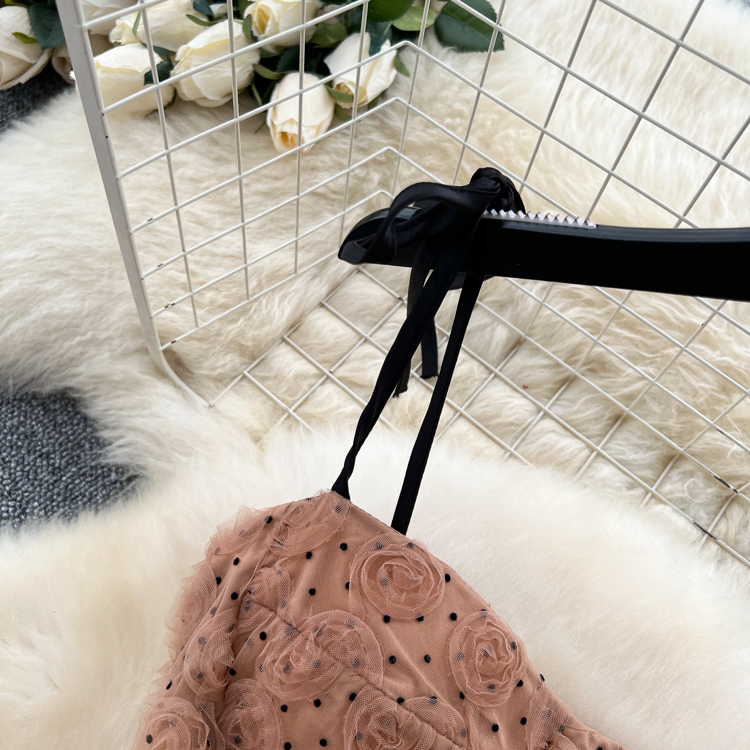 繊細なストラップと計算されたシルエットがボディラインを美しく見せ、