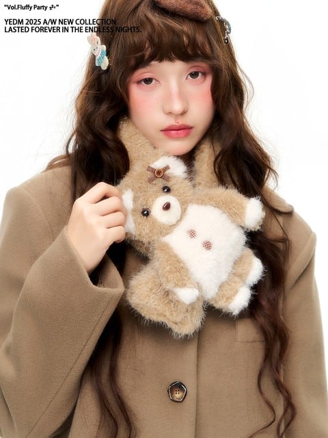ふんわりと優しい手触りが魅力の、ぬいぐるみみたいなベアデザインマフラー。