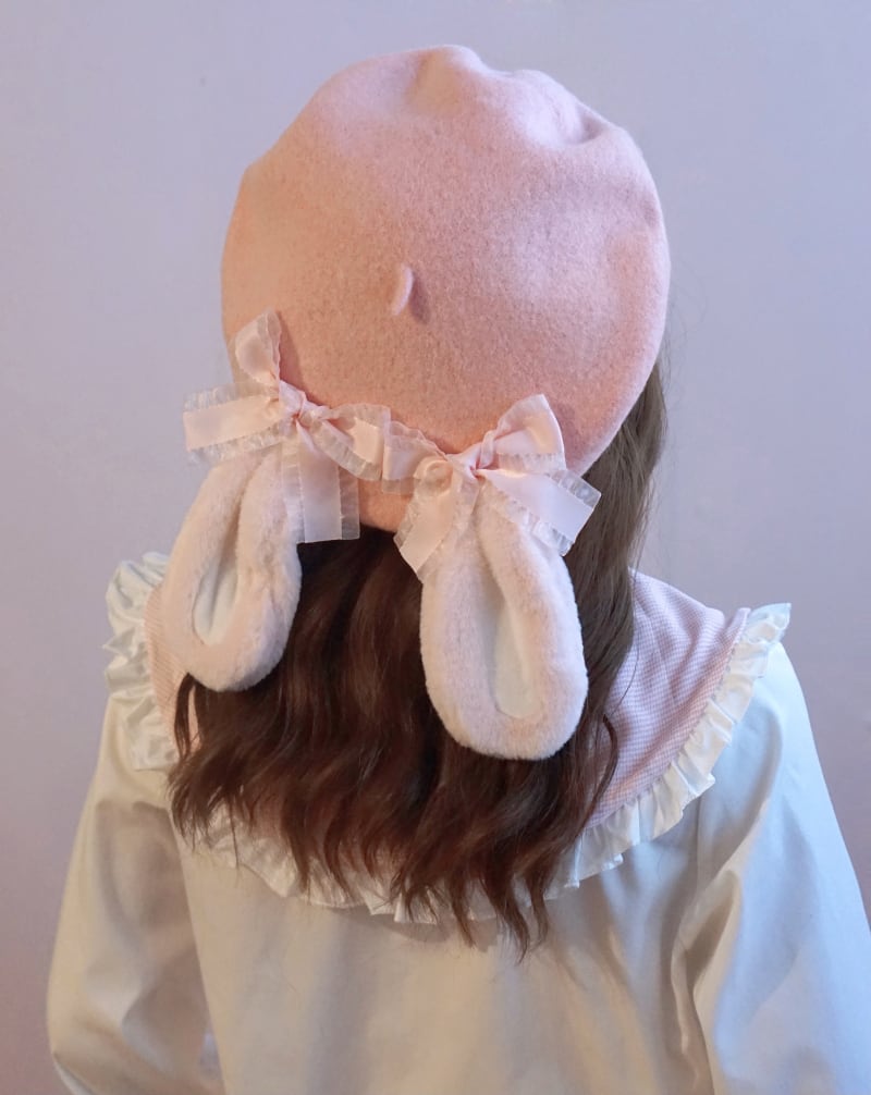 愛らしい垂れ耳のうさぎモチーフをあしらったベレー帽。