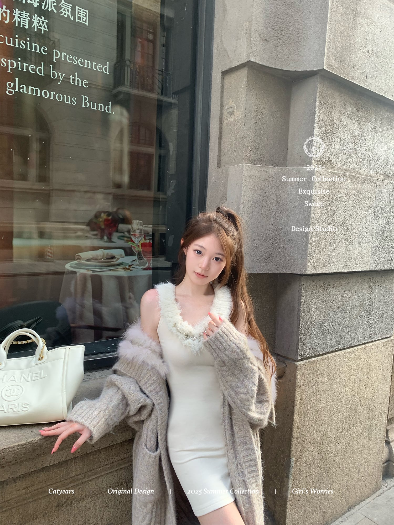 大きめのリアルフォックスファー襟が顔まわりを華やかに彩り、