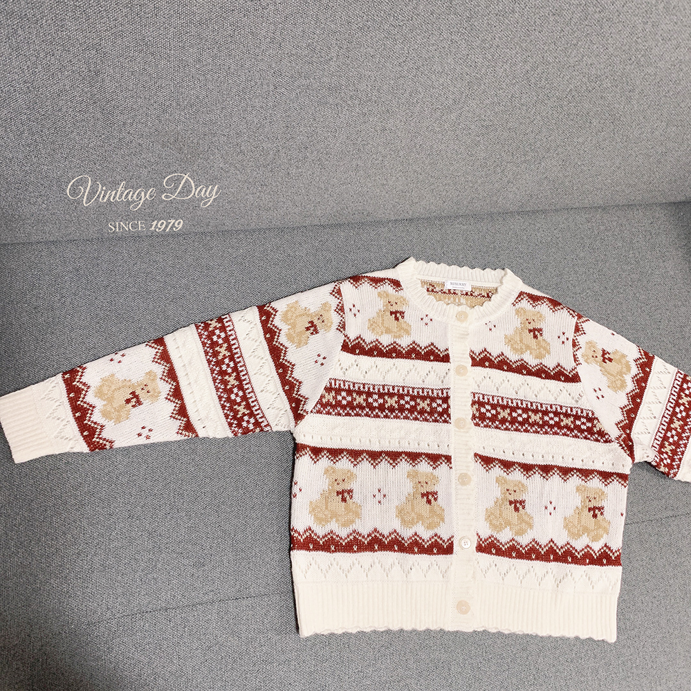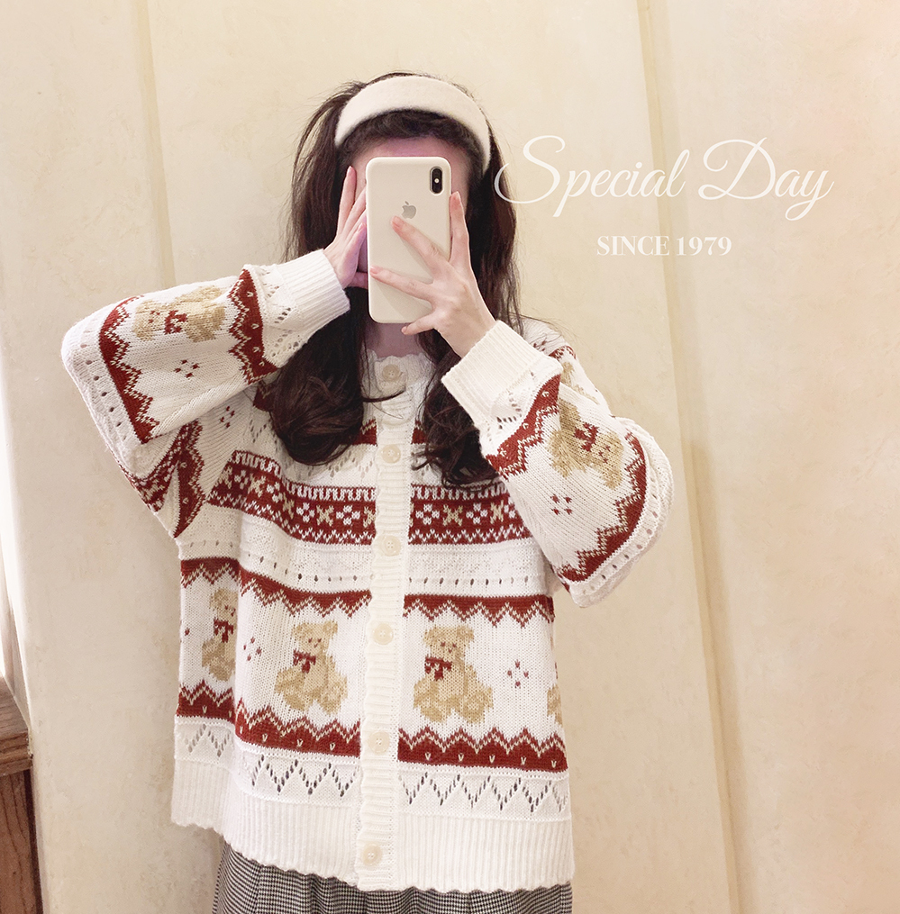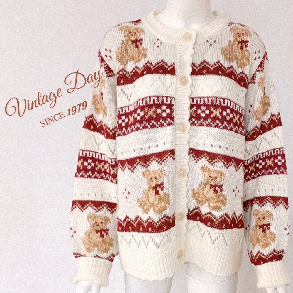 レトロ小熊ジャカードニットカーディガン♥LA244