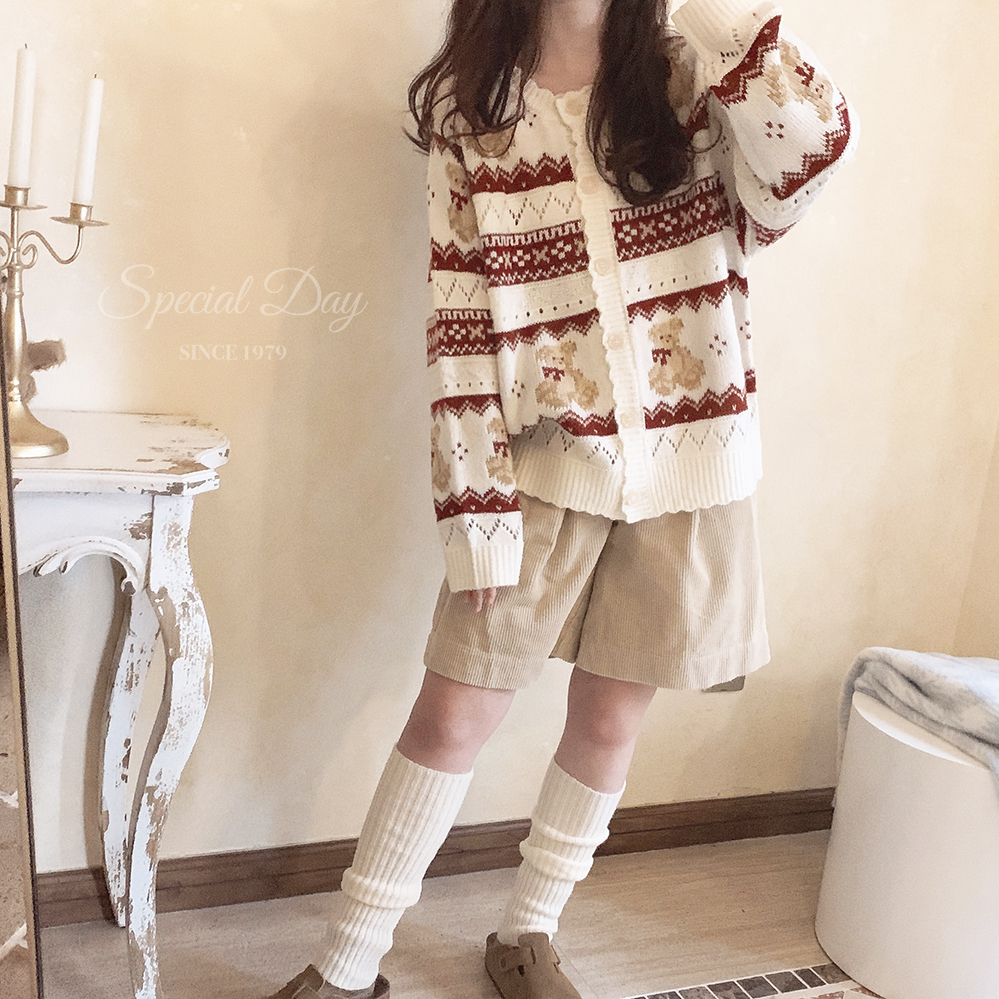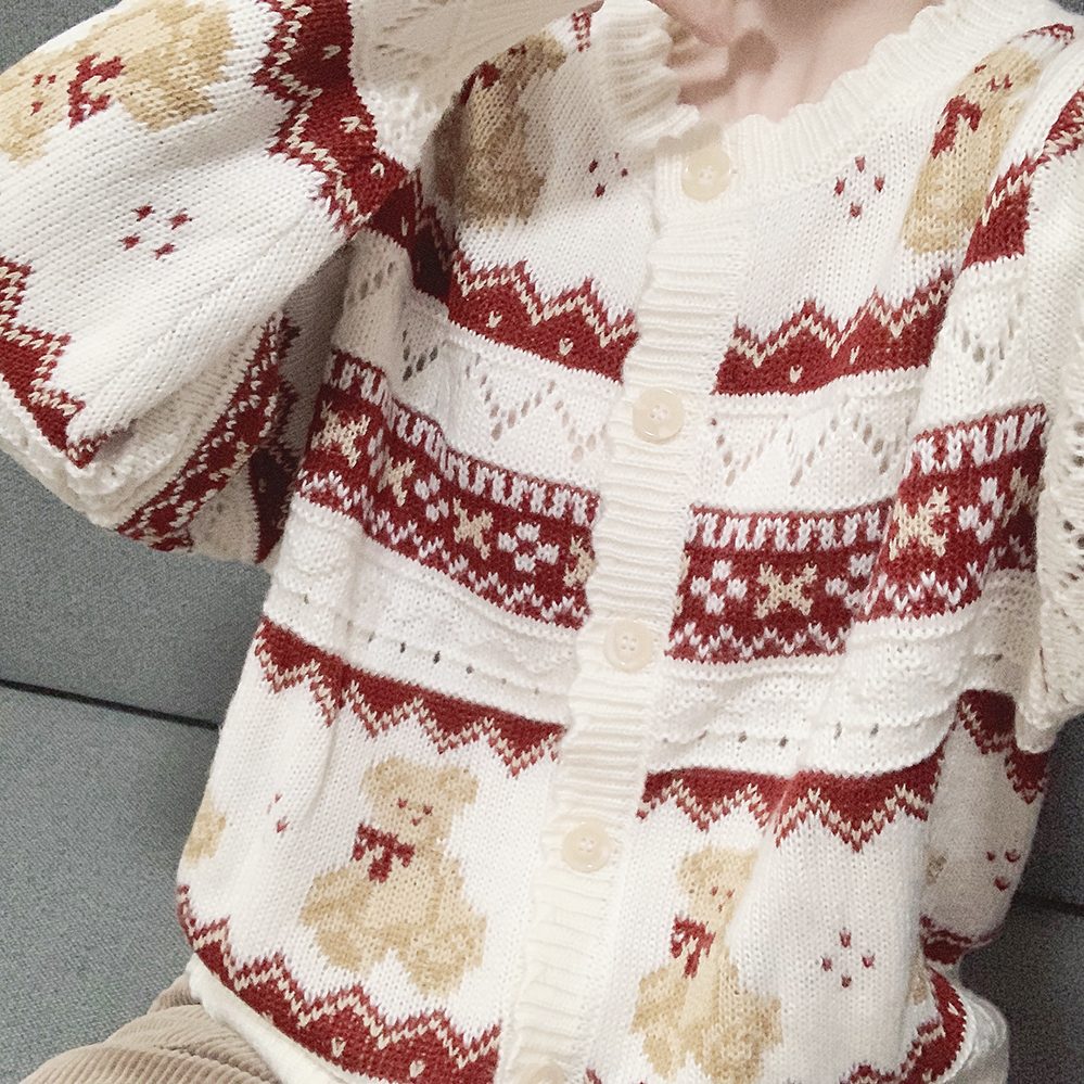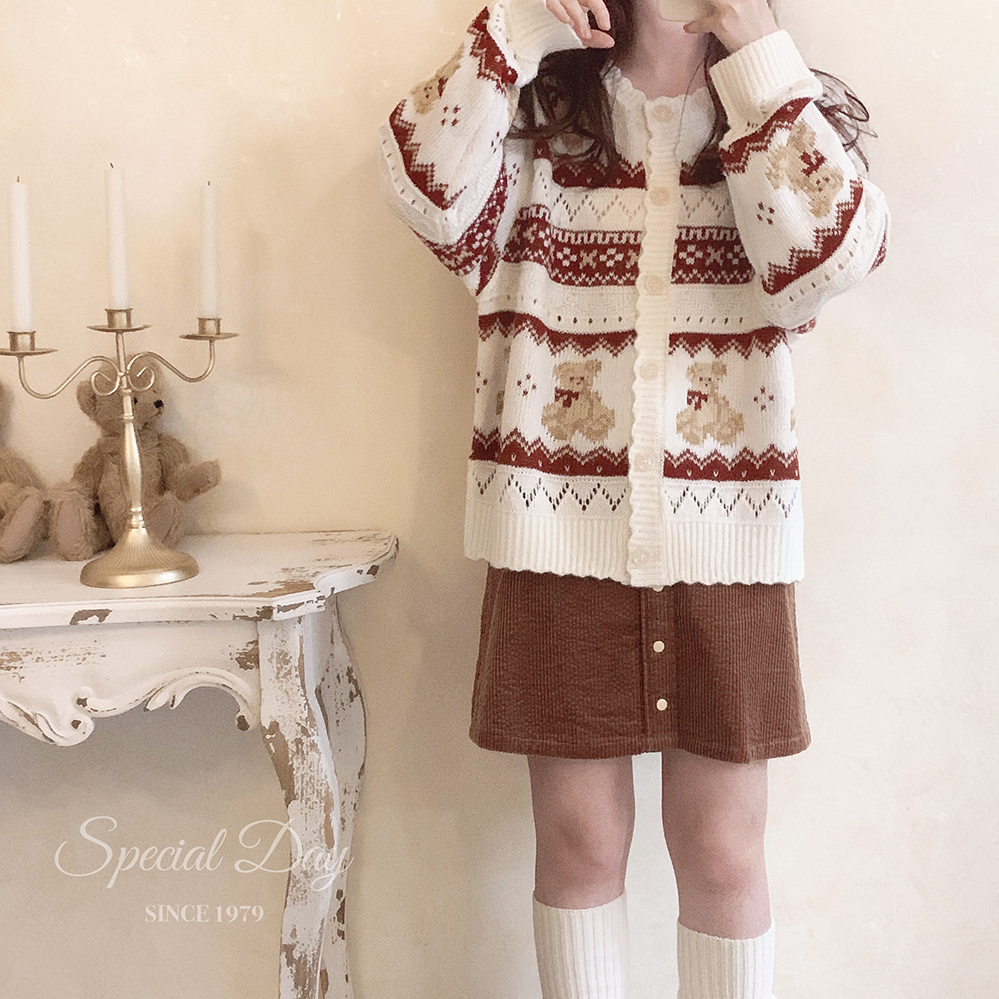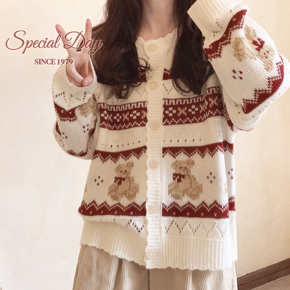 レトロ小熊ジャカードニットカーディガン♥LA244