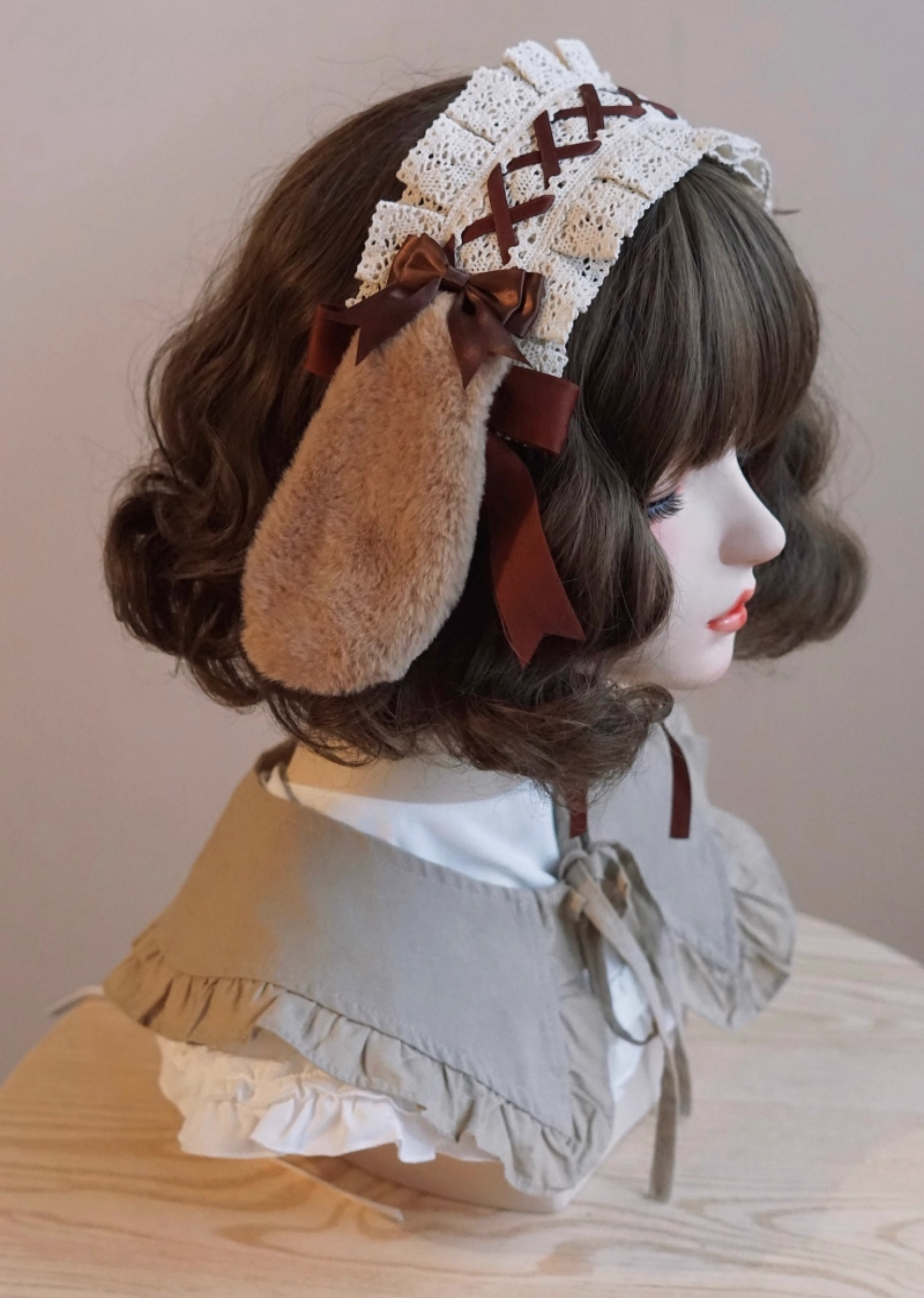 ふわふわのうさ耳が愛らしい、ハンドメイド風のレースヘッドドレス。