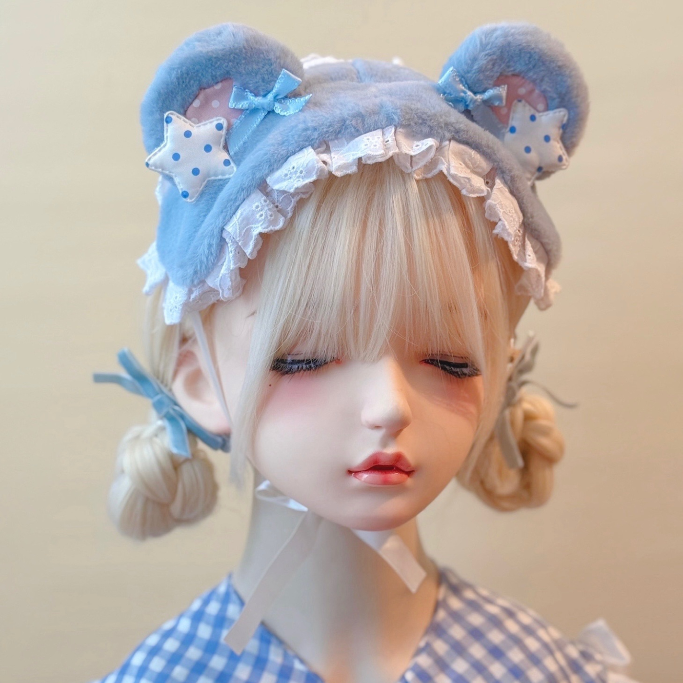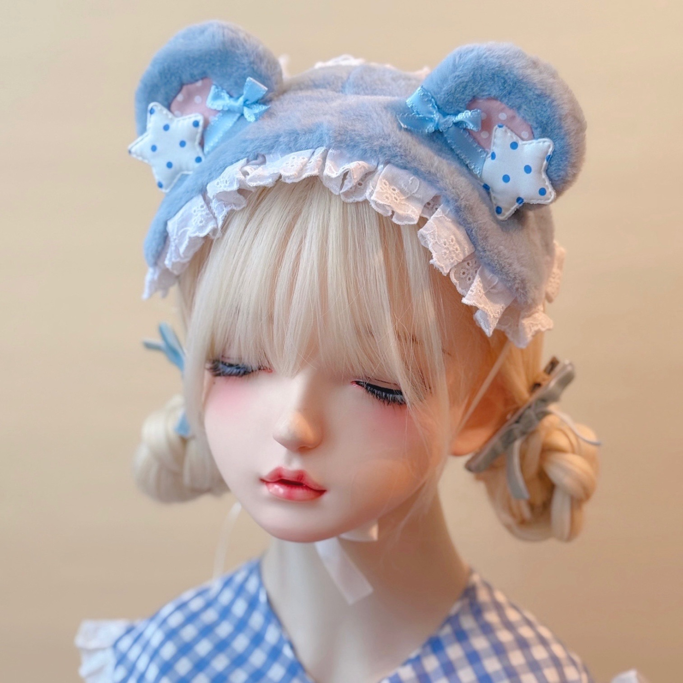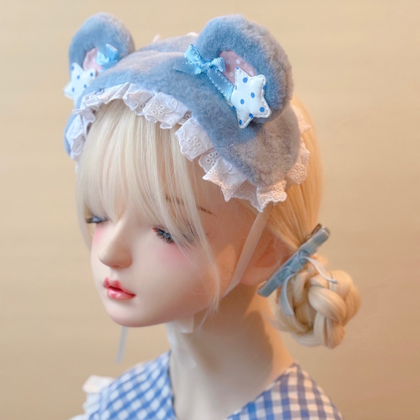 夜空を思わせるネイビーブルーに、星とドットがきらめくドリーミーなくま耳ヘアバンド。