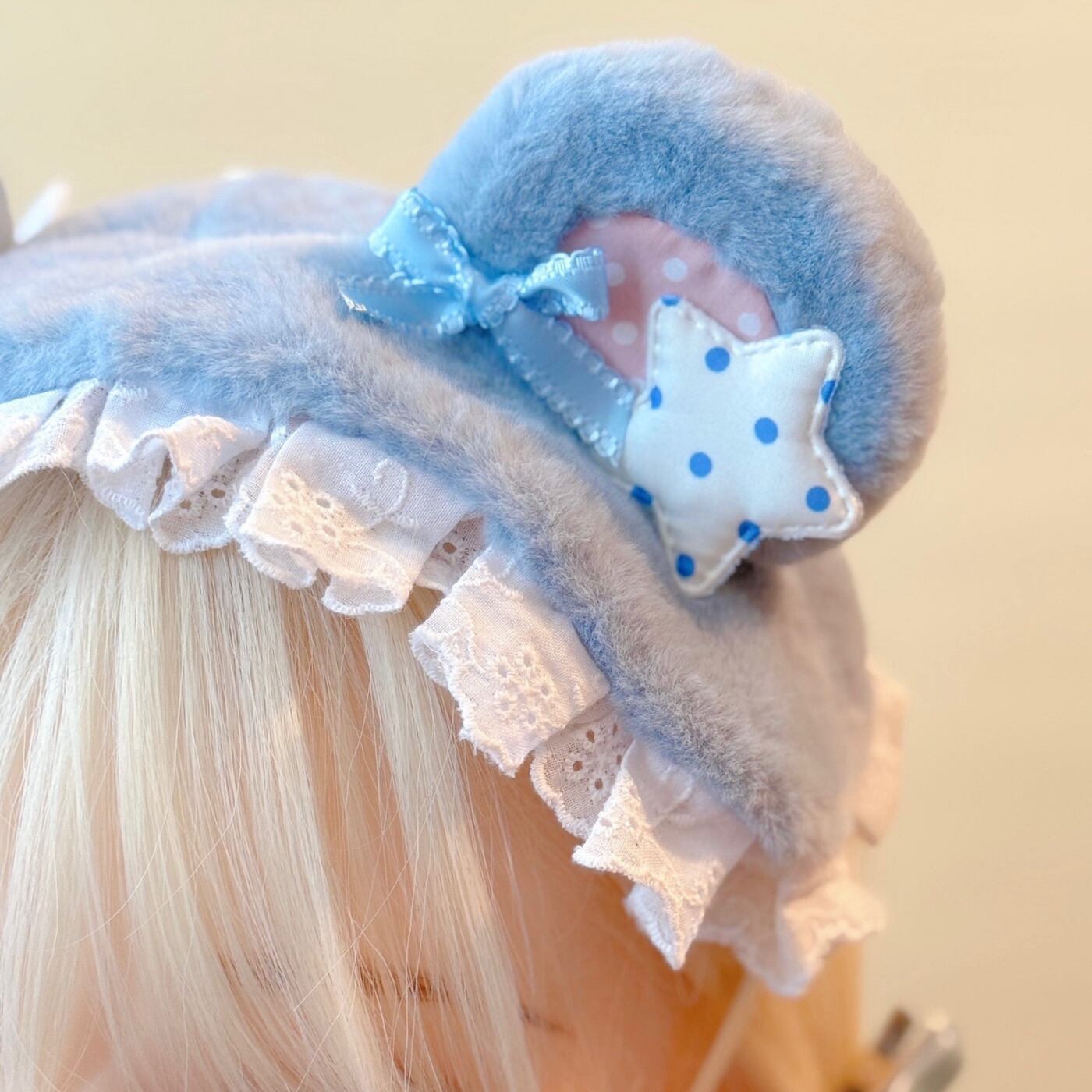 ふわふわのファーが優しく顔まわりを包み込み、まるで星降る夜に迷い込んだ小さなテディベアのよう。