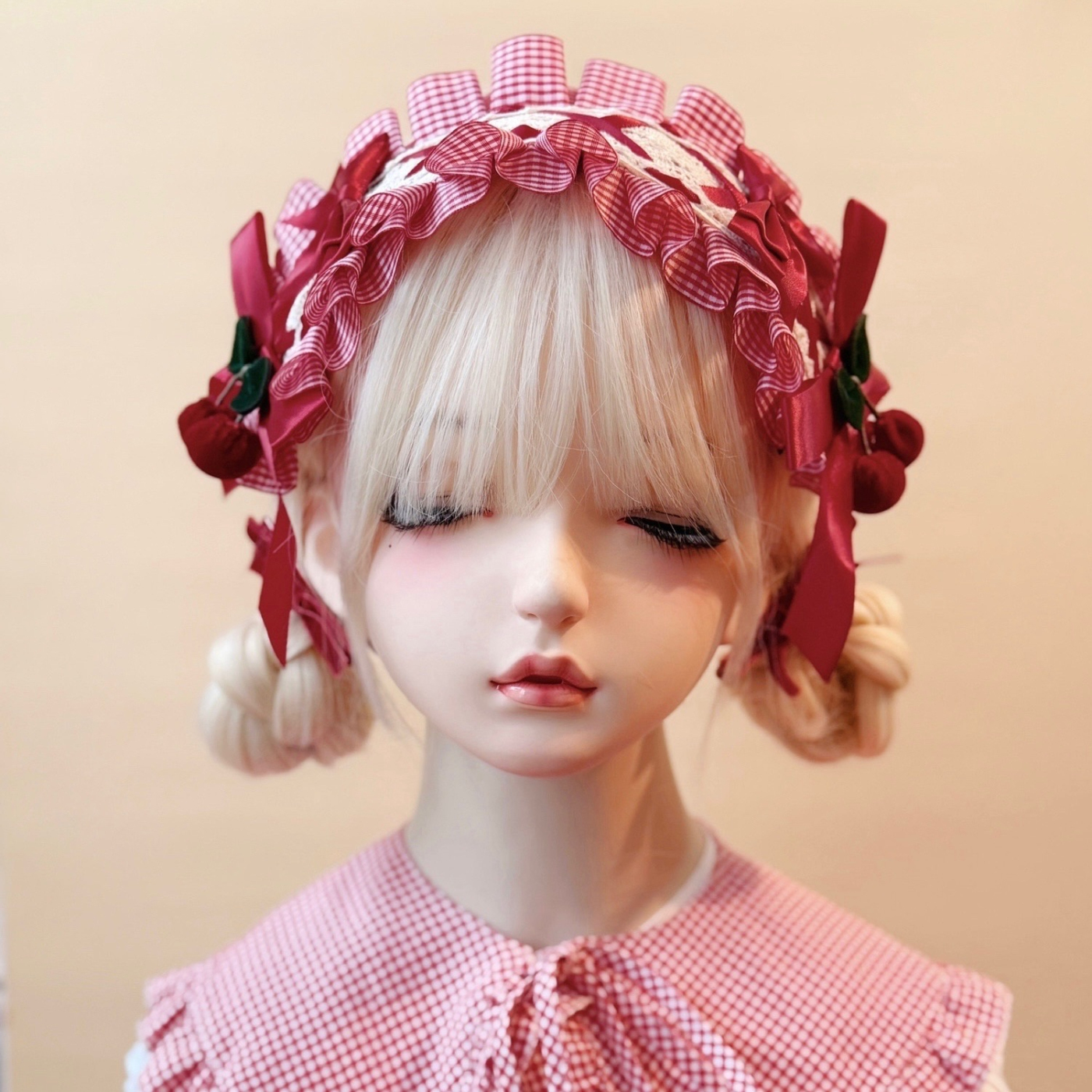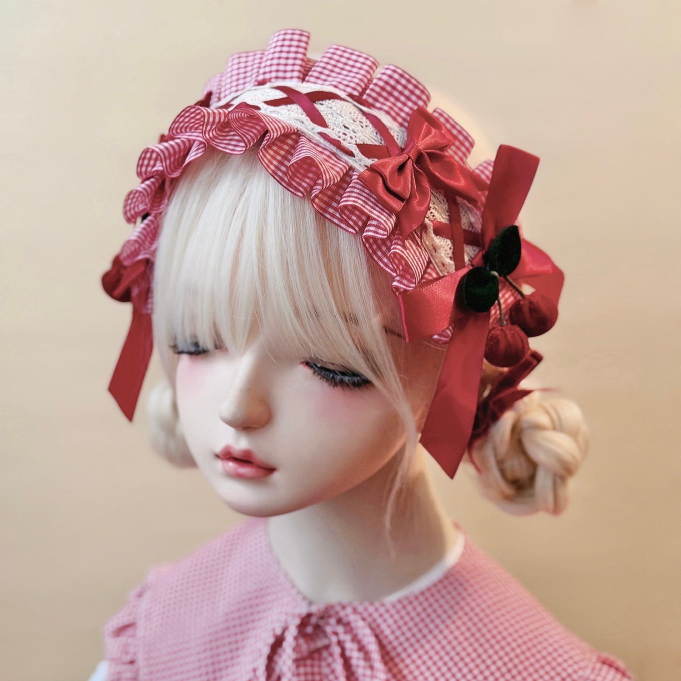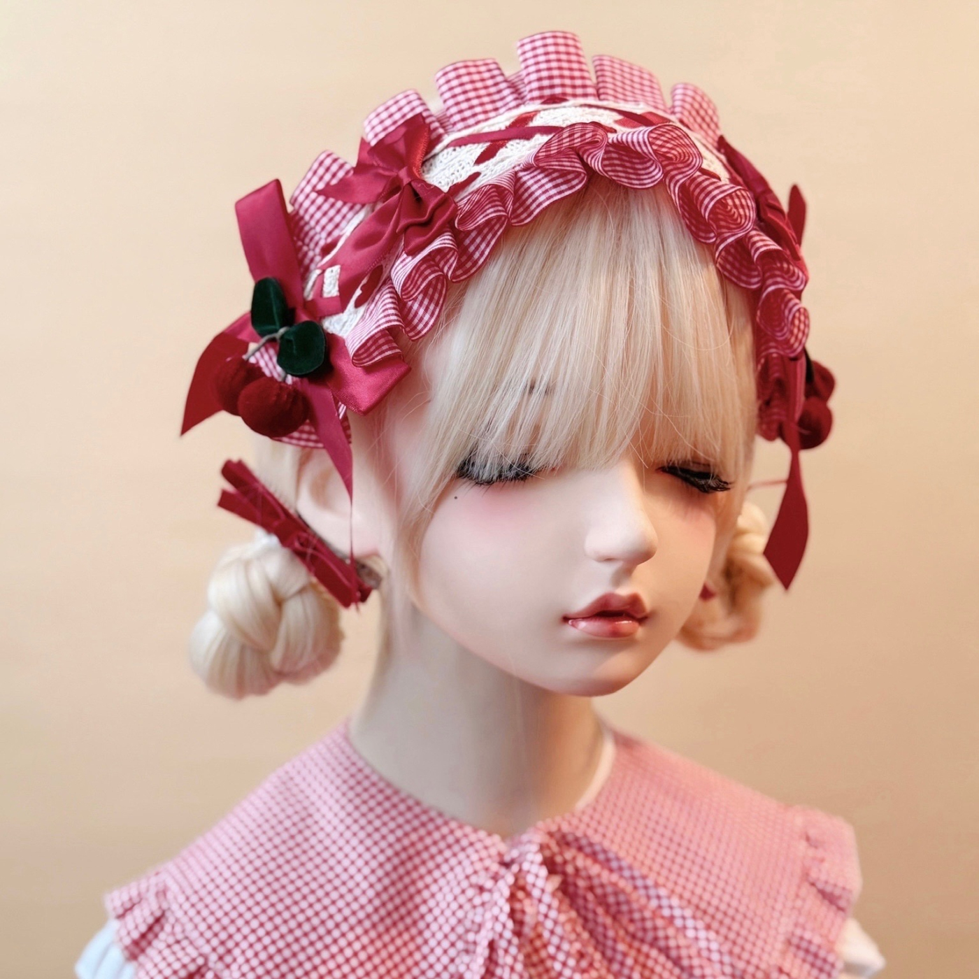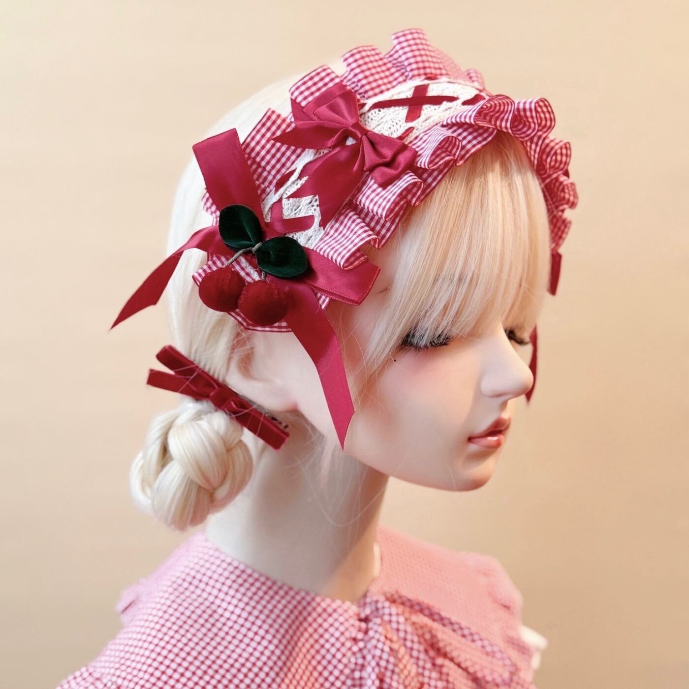 甘酸っぱいチェリーのように可憐で、どこか懐かしい赤×白チェックのリボンヘアバンド。