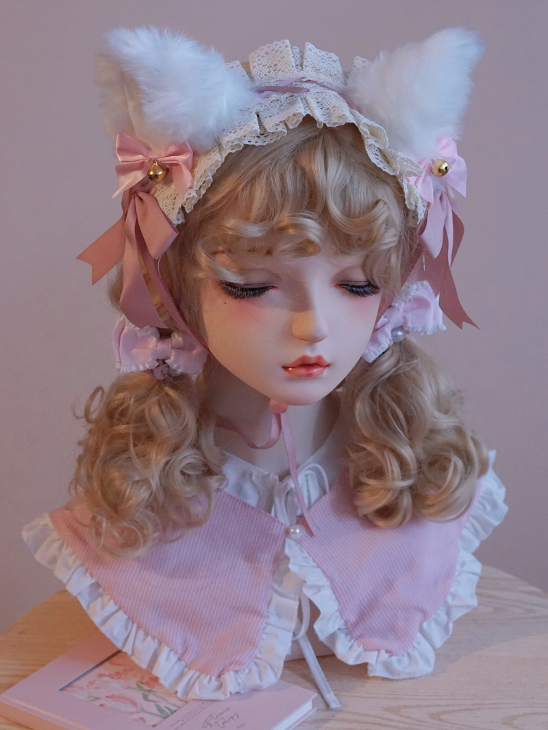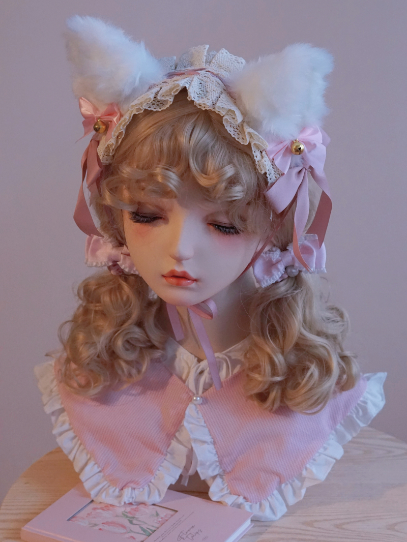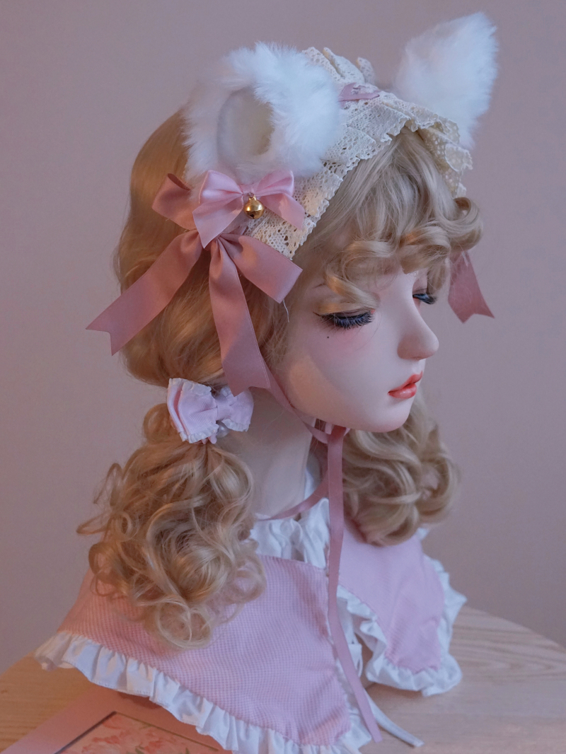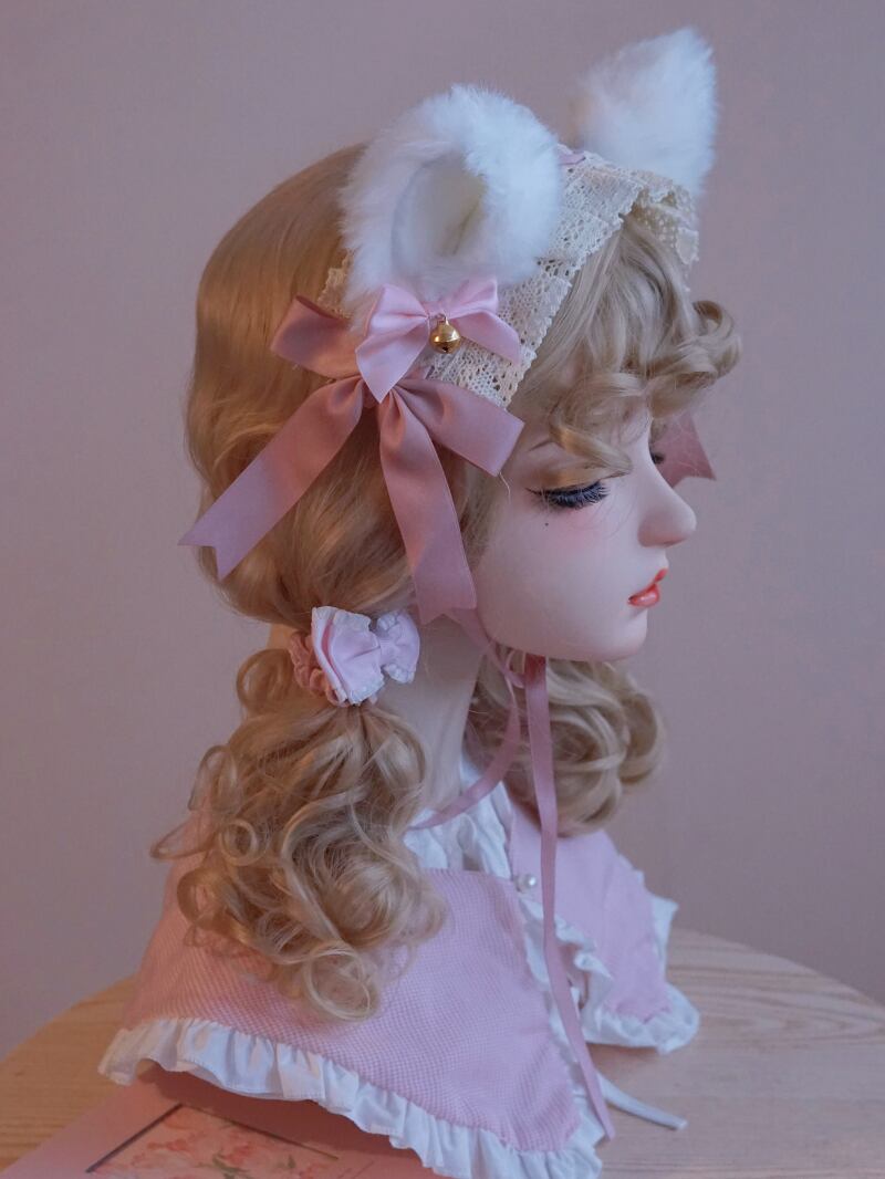 雪のように白く柔らかなファーと、淡いピンクのリボンがときめきを運ぶ猫耳ヘアバンド。