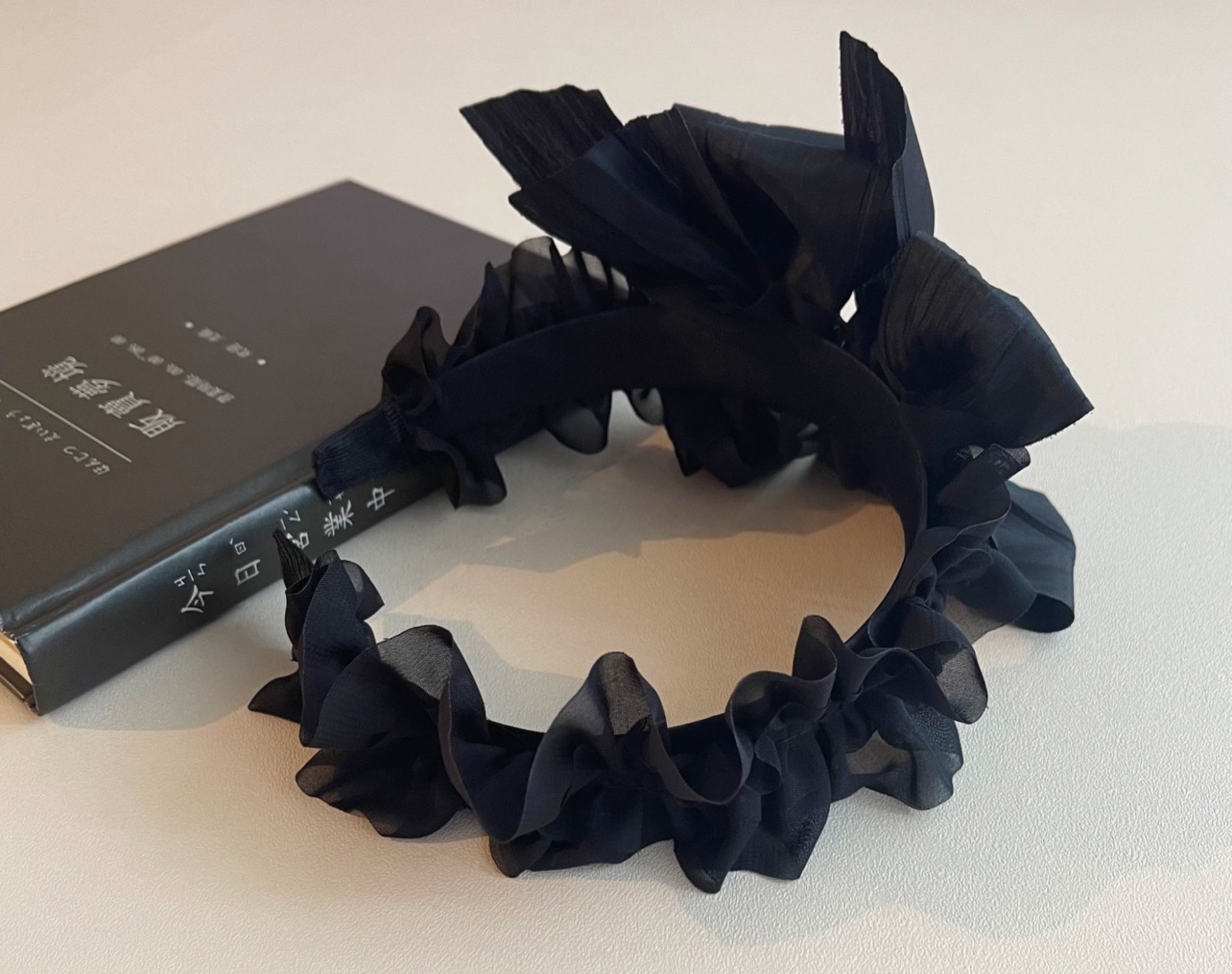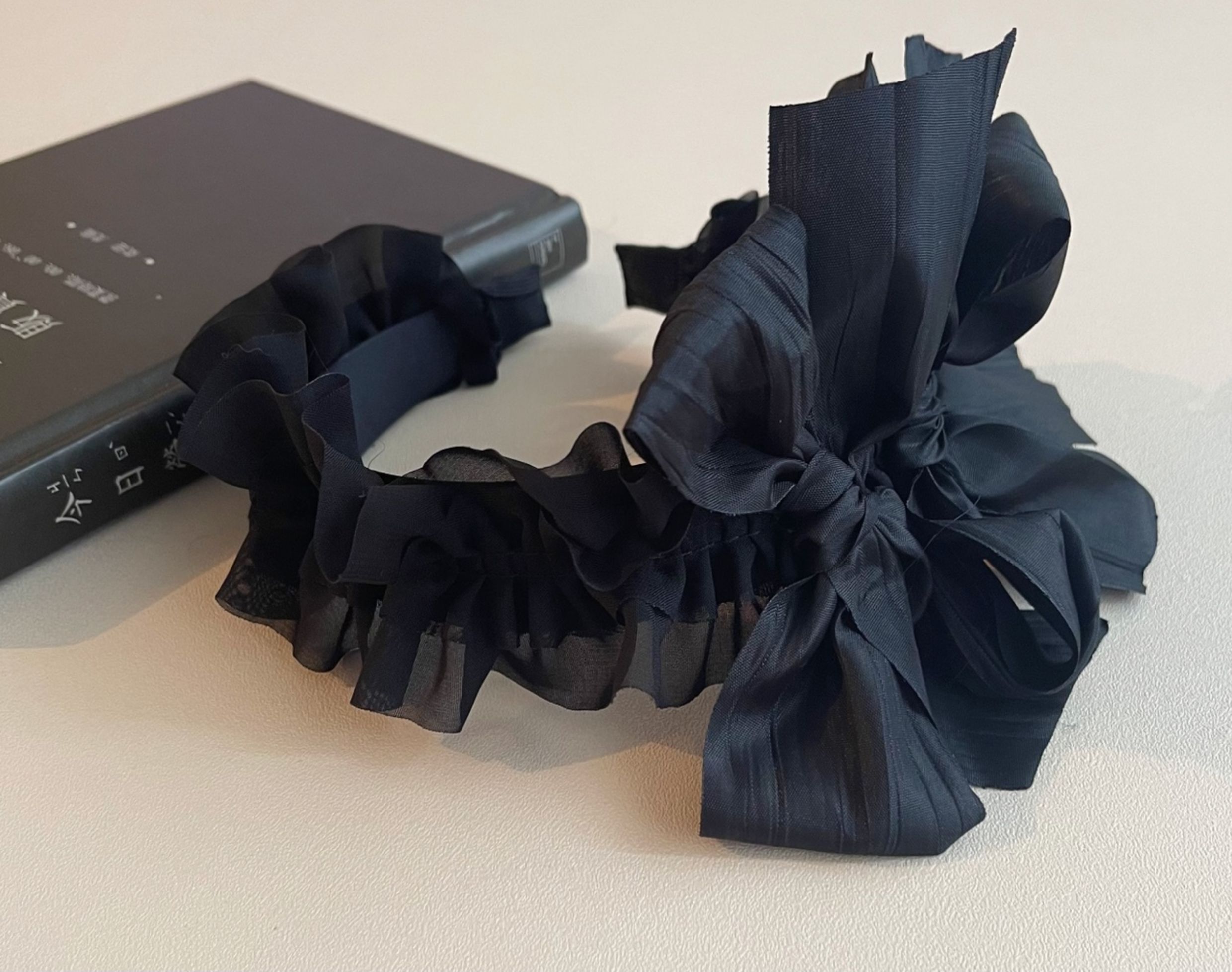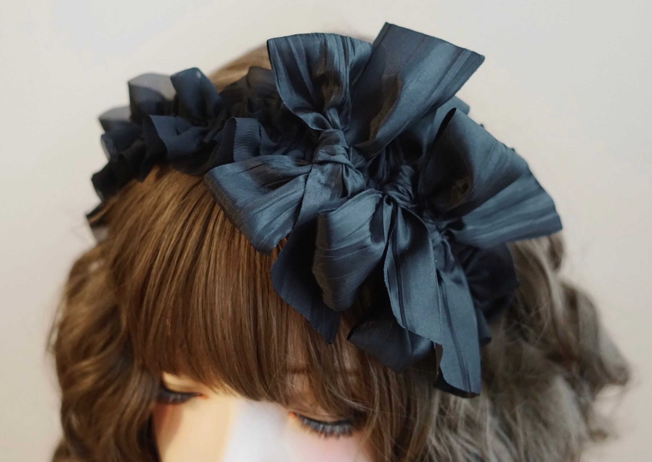 夜の花園で静かに咲く黒薔薇のように、凛とした美しさを宿すノワールリボンヘアバンド。