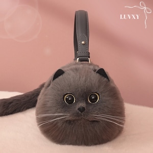 【中ぐらいのこ】モフモフグレーキャットバッグ♥LA283