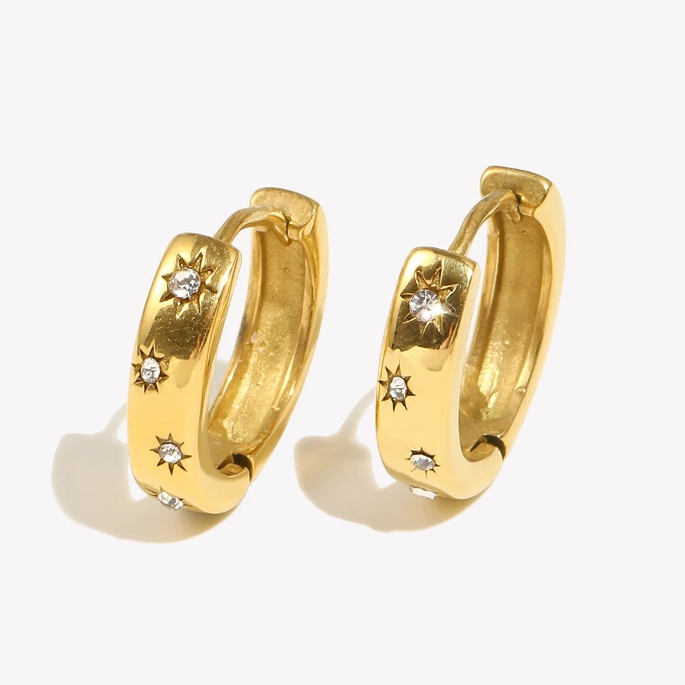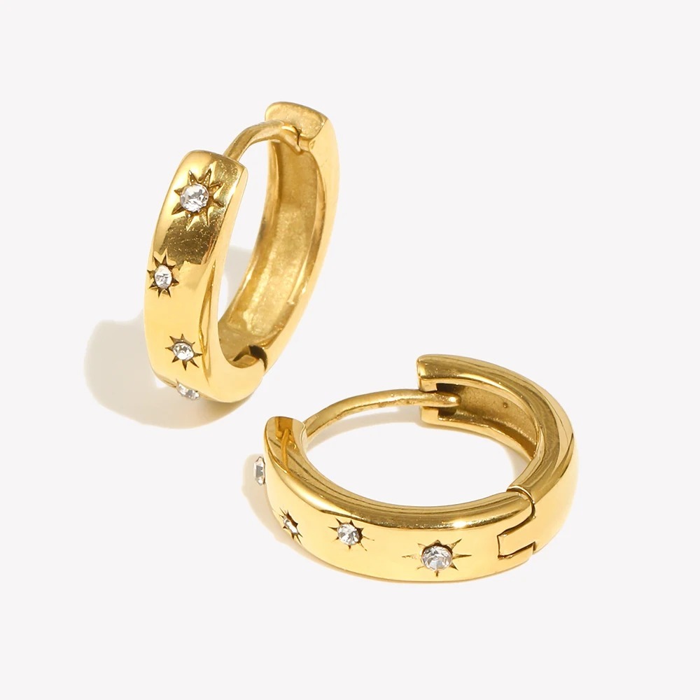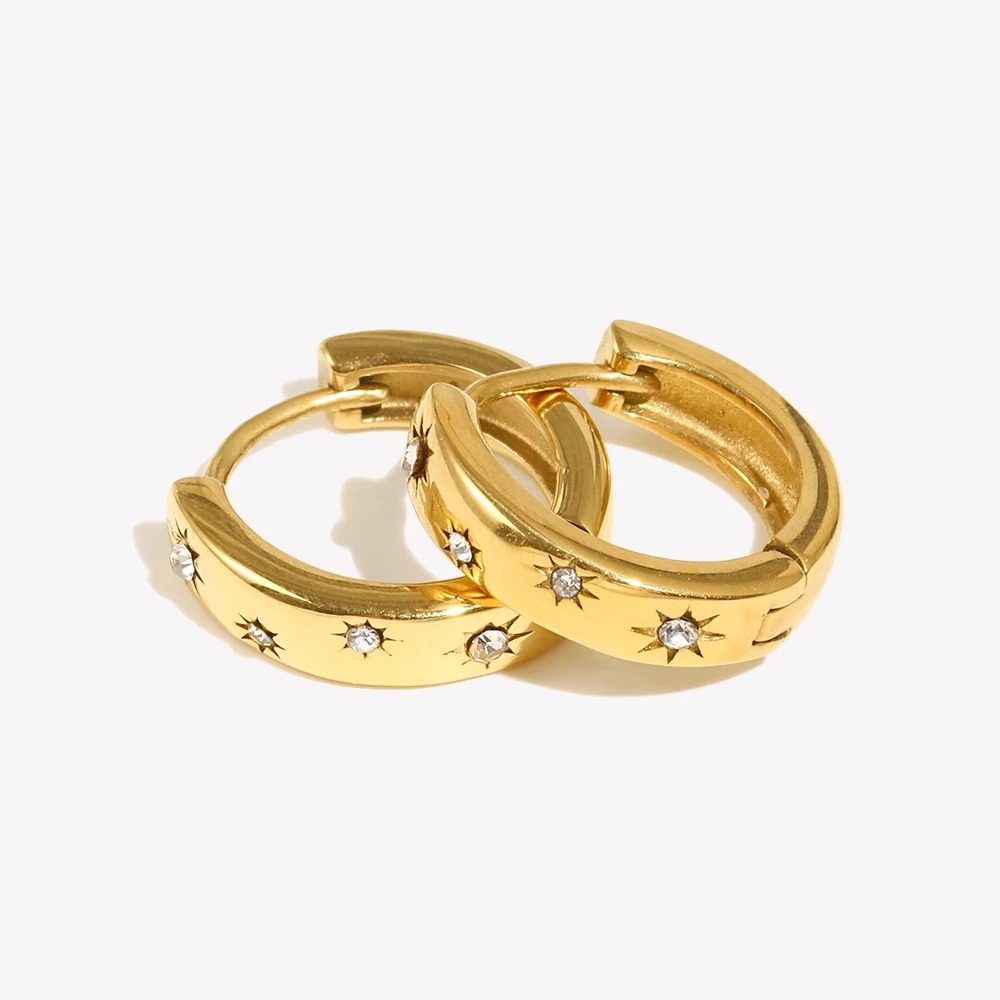 きらめく3Aジルコンが、星屑のようにきらりと輝くフープピアス。