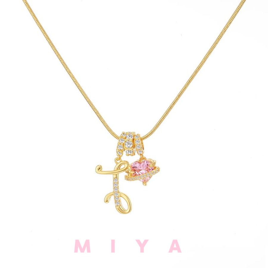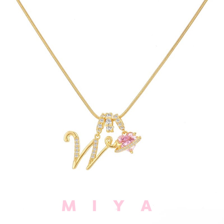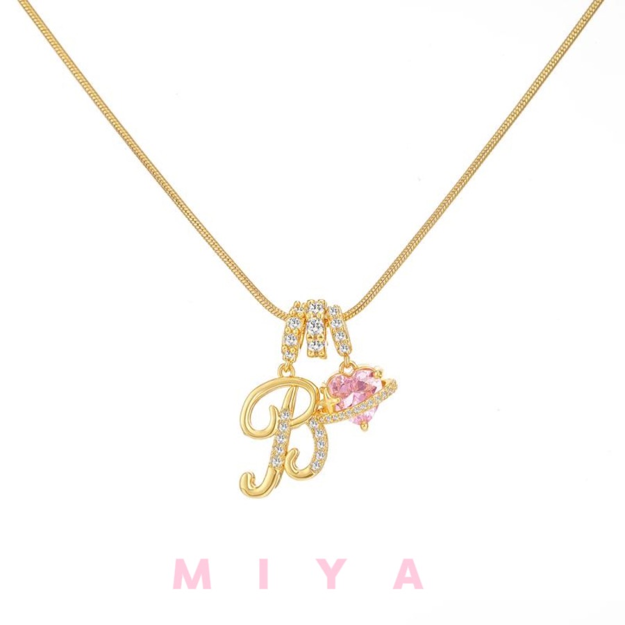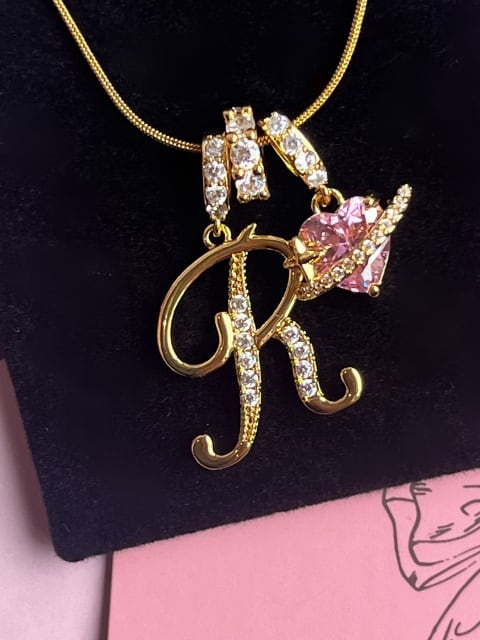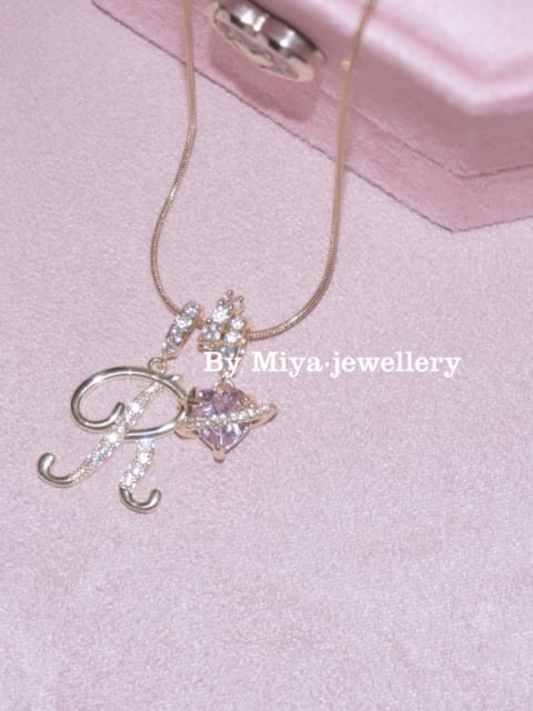 ピンクのハートストーンが輝く、特別なアルファベットネックレスです。