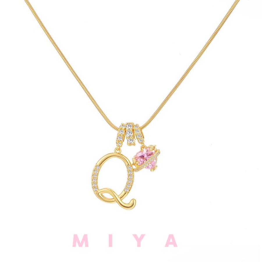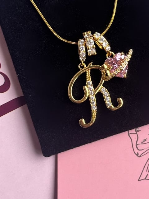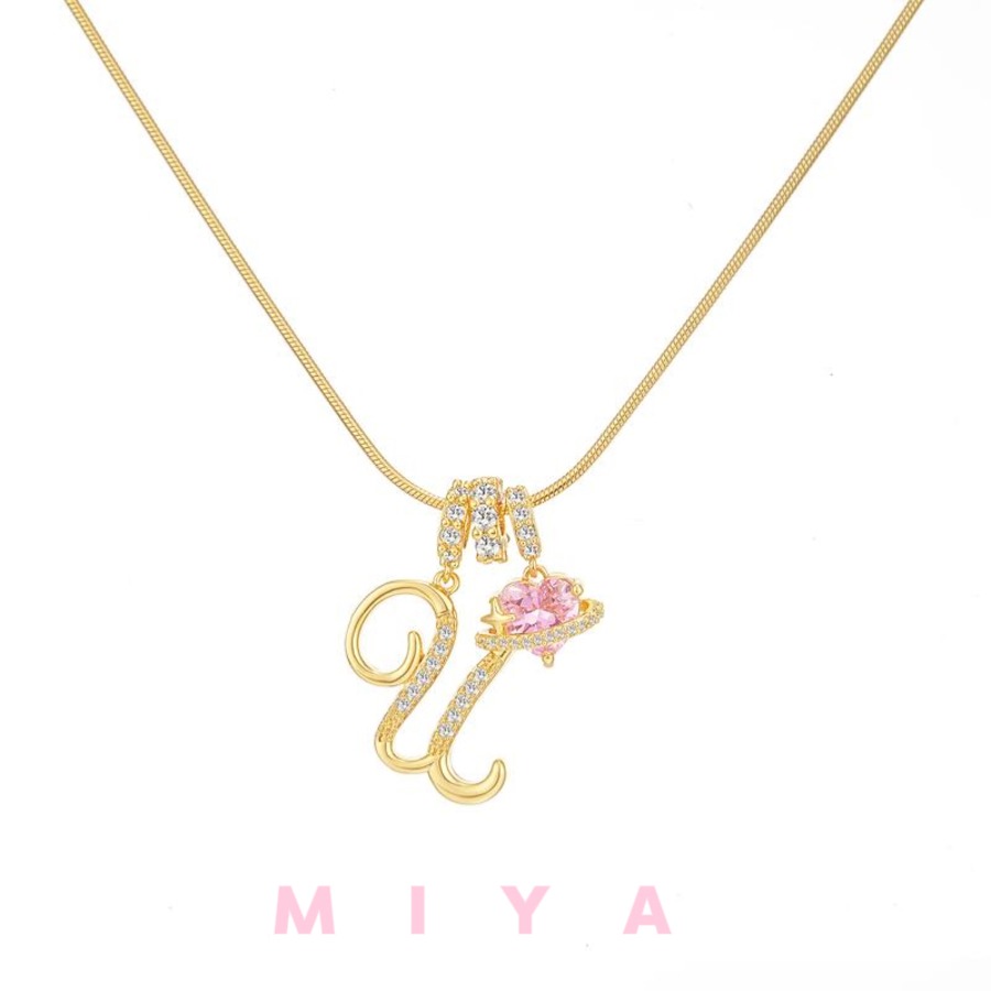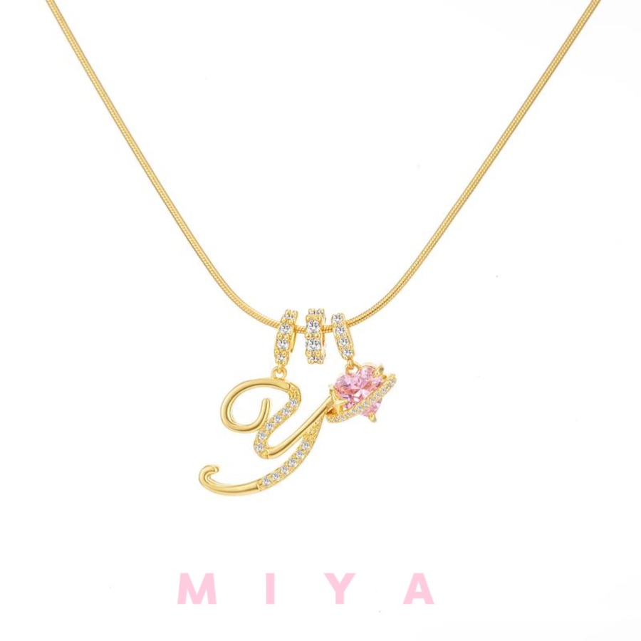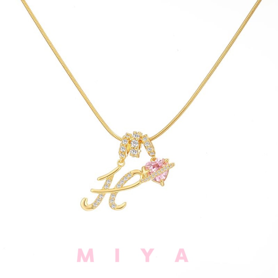 ピンクのハートストーンが輝く、特別なアルファベットネックレスです。