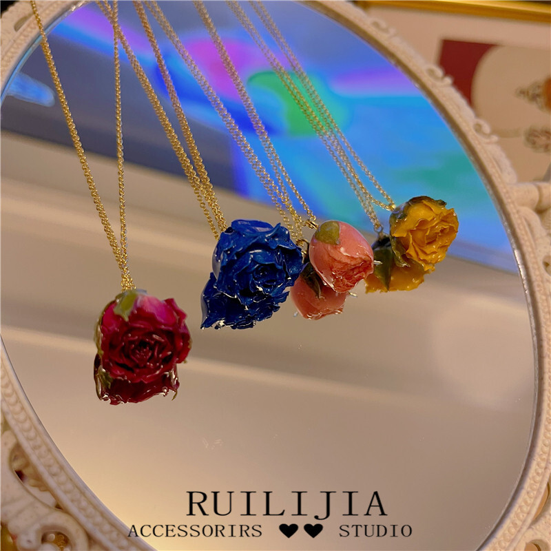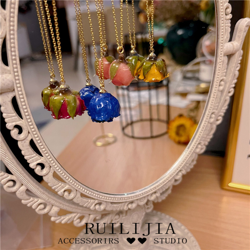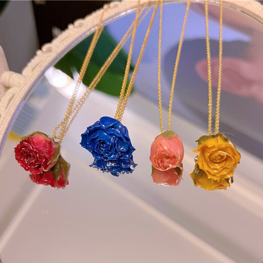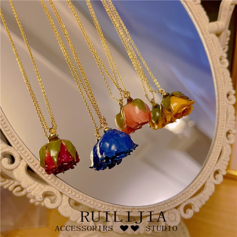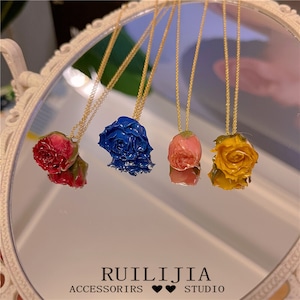 素材:合金(14Kゴールドメッキ)+天然ドライローズ(樹脂コーティング)