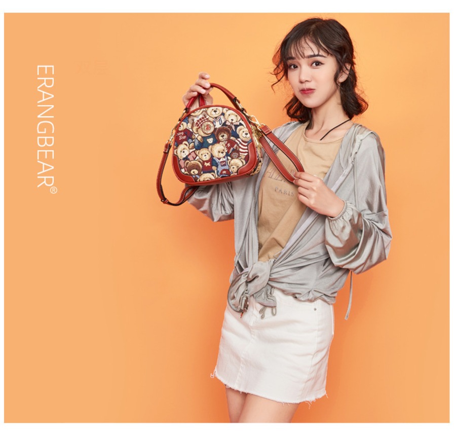 レトロなテディベアたちが微笑む、絵本のページのような丸型ショルダーバッグ。